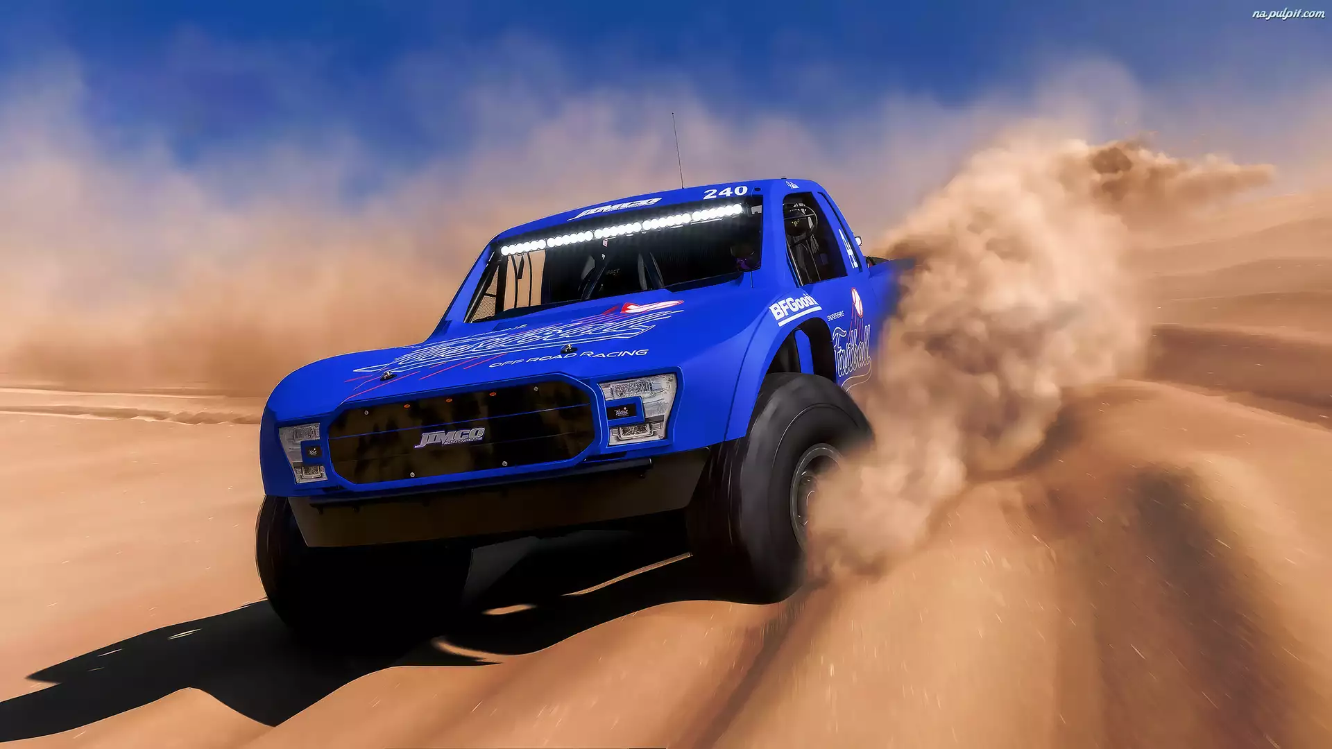 Rajd, Forza Horizon 5 Rally Adventures, Pustynia, Przód, Piasek, Samochód, Terenowy, Gra, Niebieski