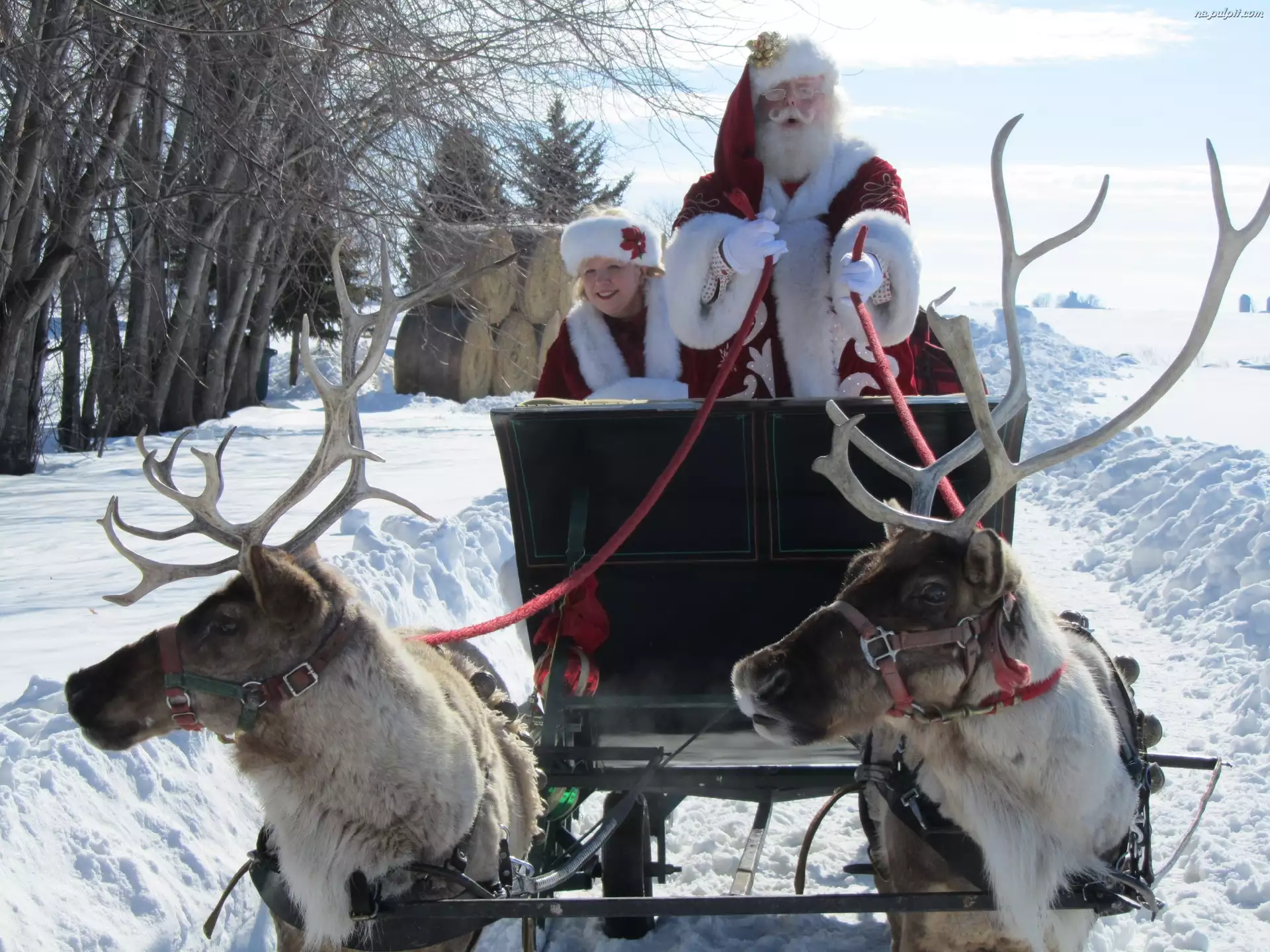 Renifery, Zima, Mikołaj, Zaprzęg
