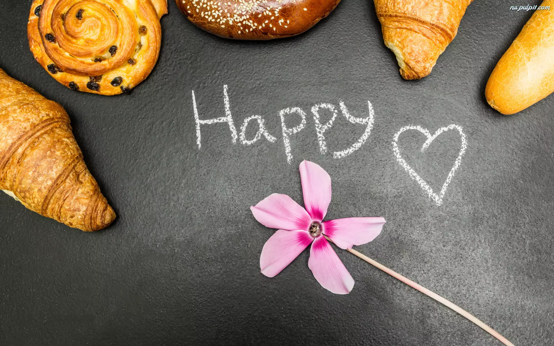 Napis, Ciastka, Rogaliki, Kwiat, Happy