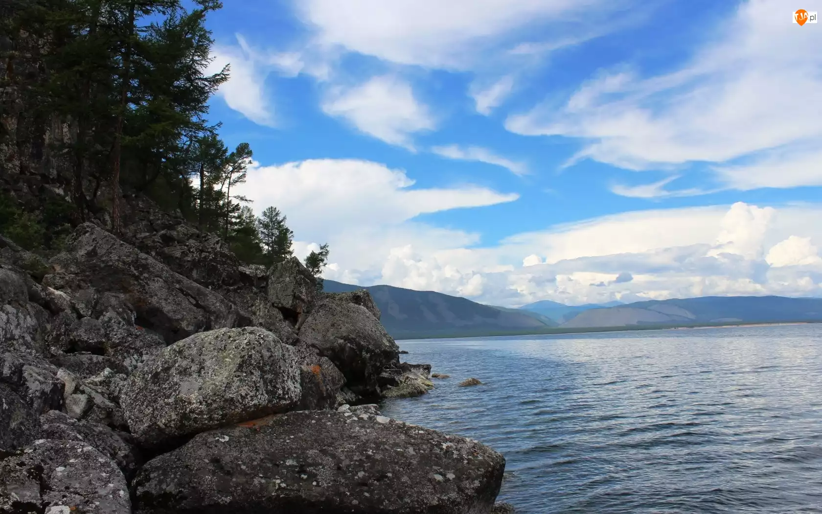 Rosja, Góry, Skały, Jezioro, Bajkał
