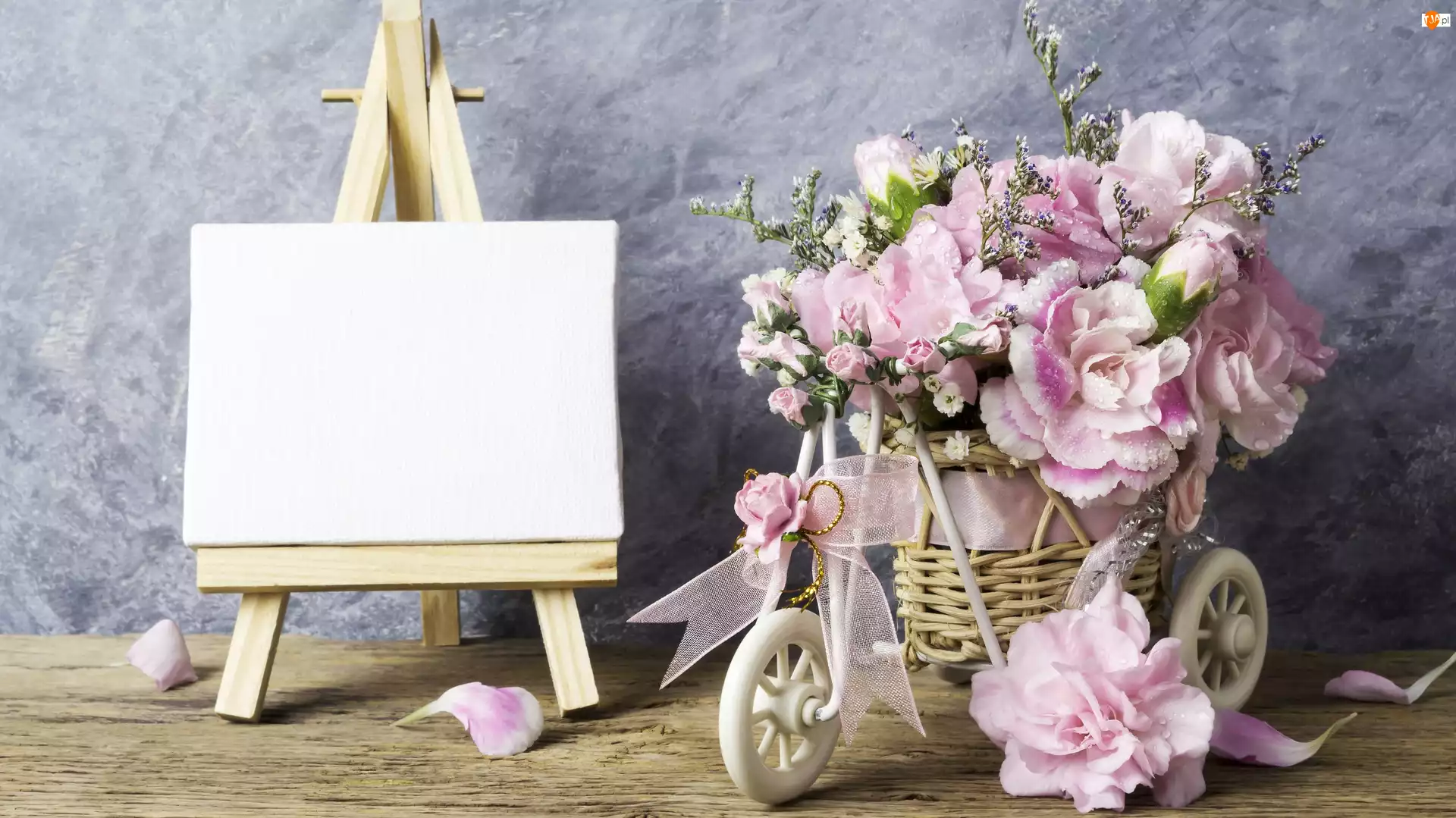 Tablica, Rowerek, Kwiaty, Goździki Szabo