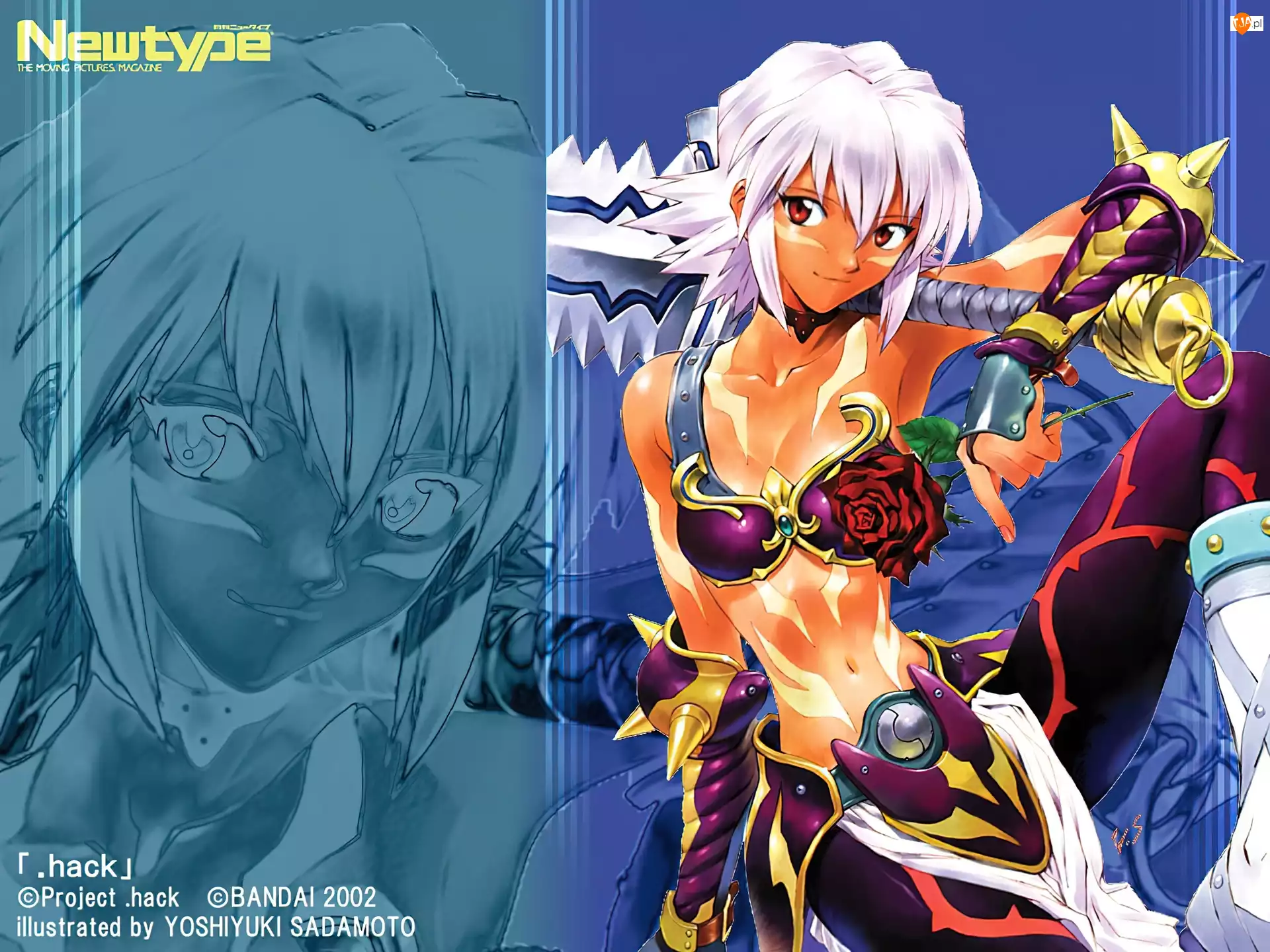 róża, Dot Hack, brzuch, broń, dziewczyna