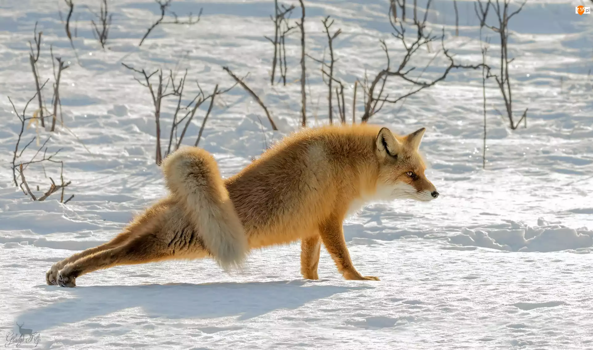 Rozciąganie lisa w zimie