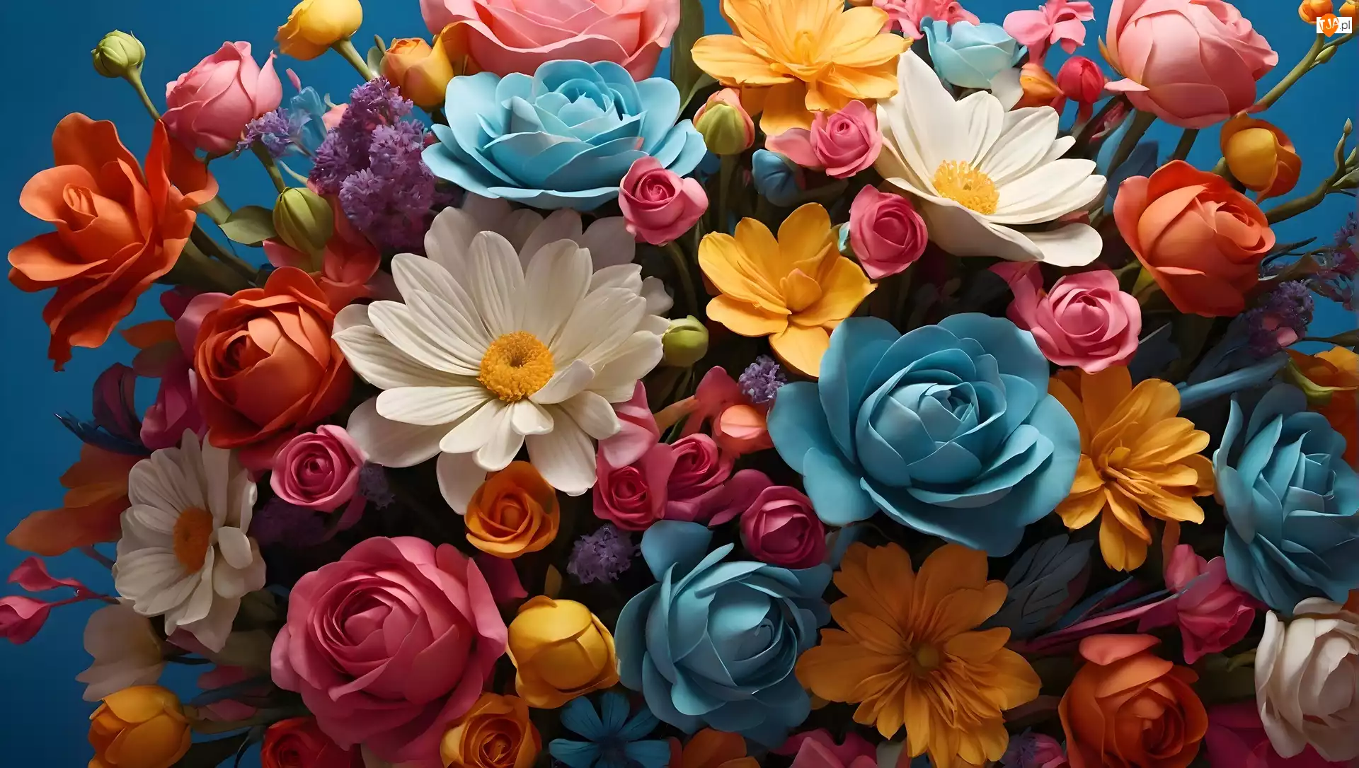 Róże, Grafika, Kolorowe, Kwiaty, Gerbery