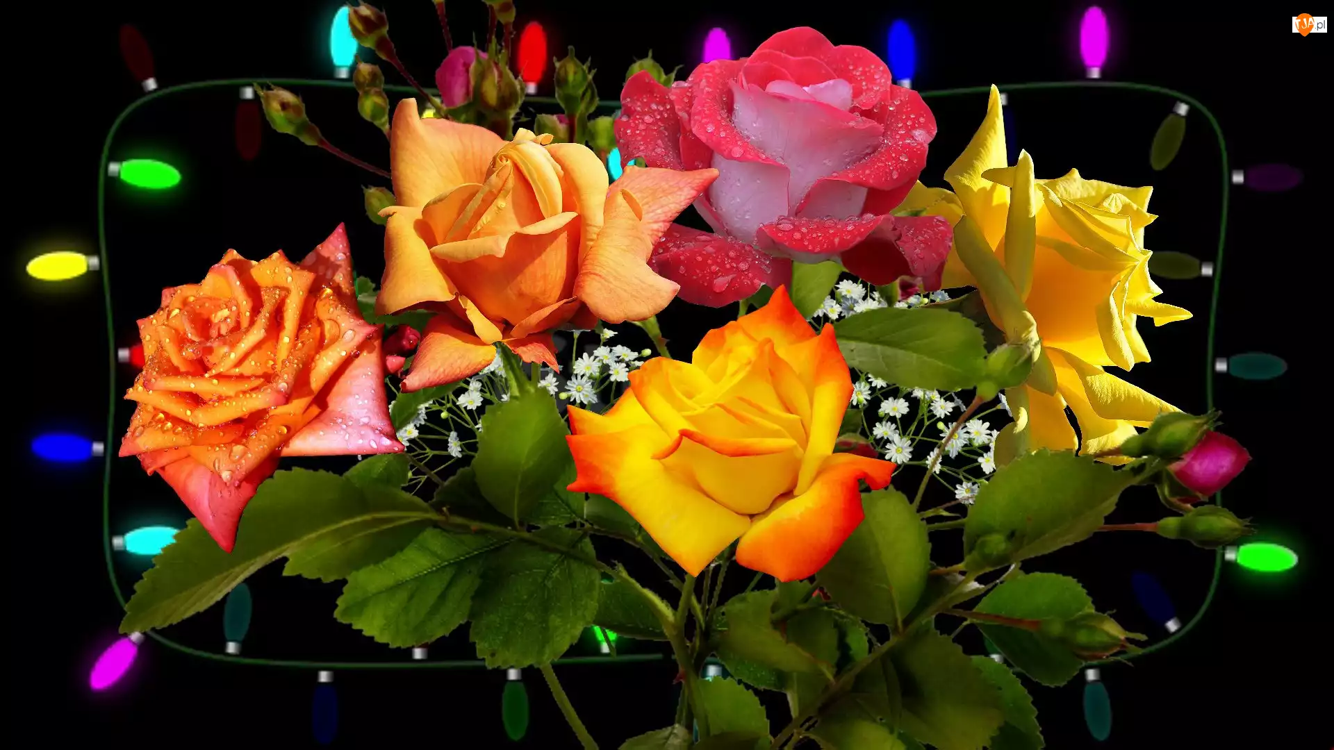 Tagi: Róże Krople Kolorowe Kwiaty Bukiet