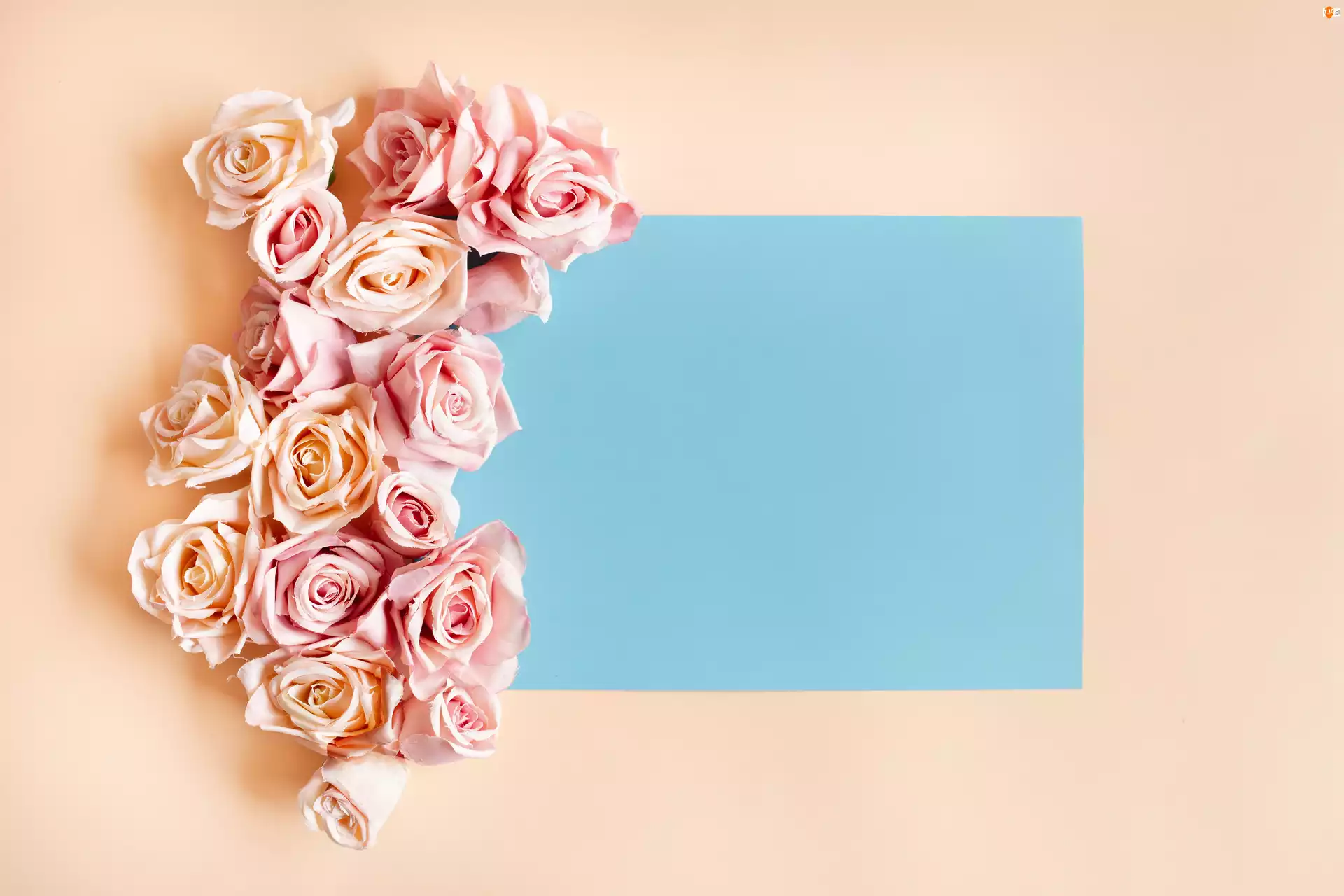 Róże, Niebieska, Kartka, Kwiaty