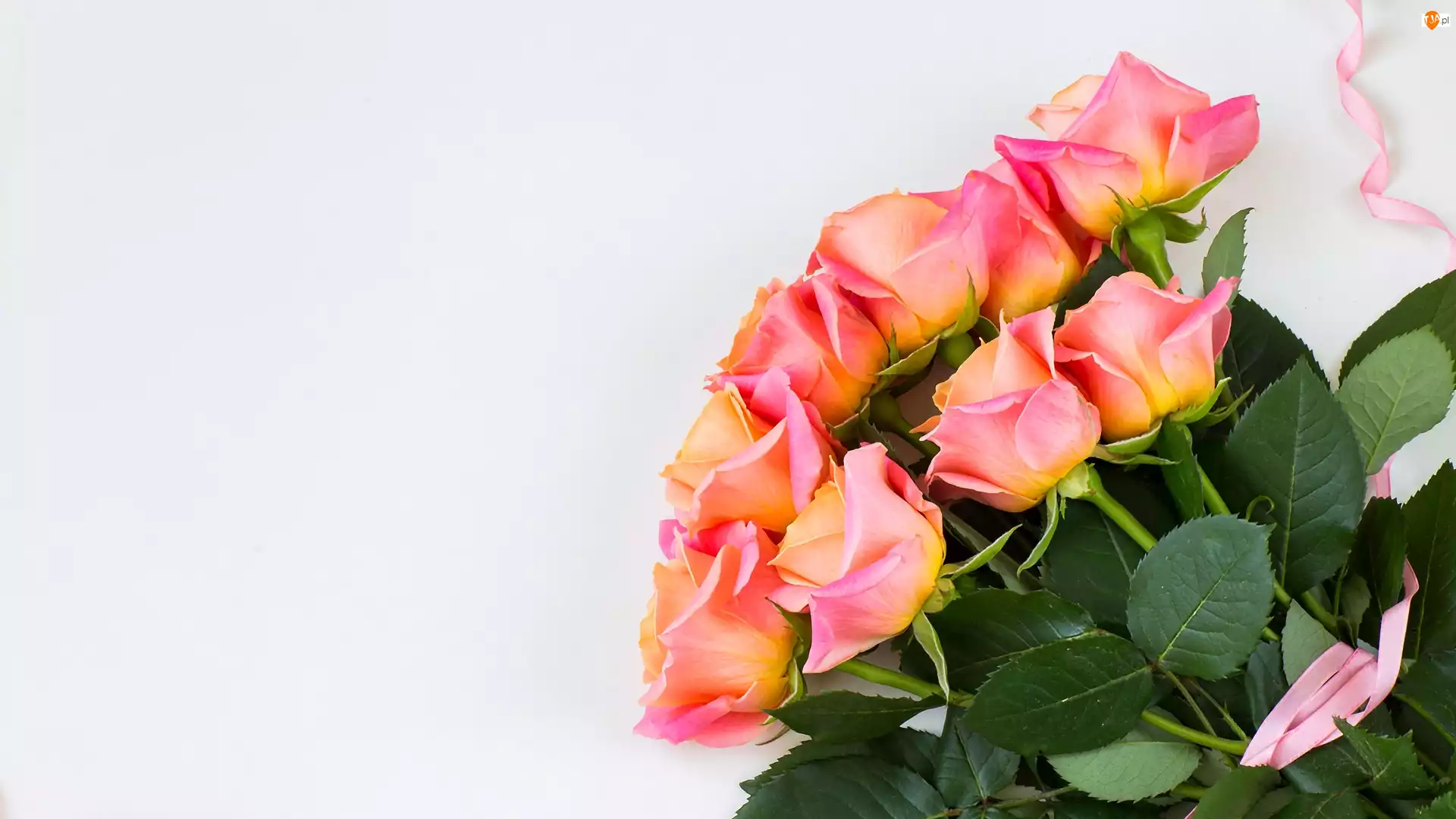 Wstążka, Róże, Bukiet, Różowa