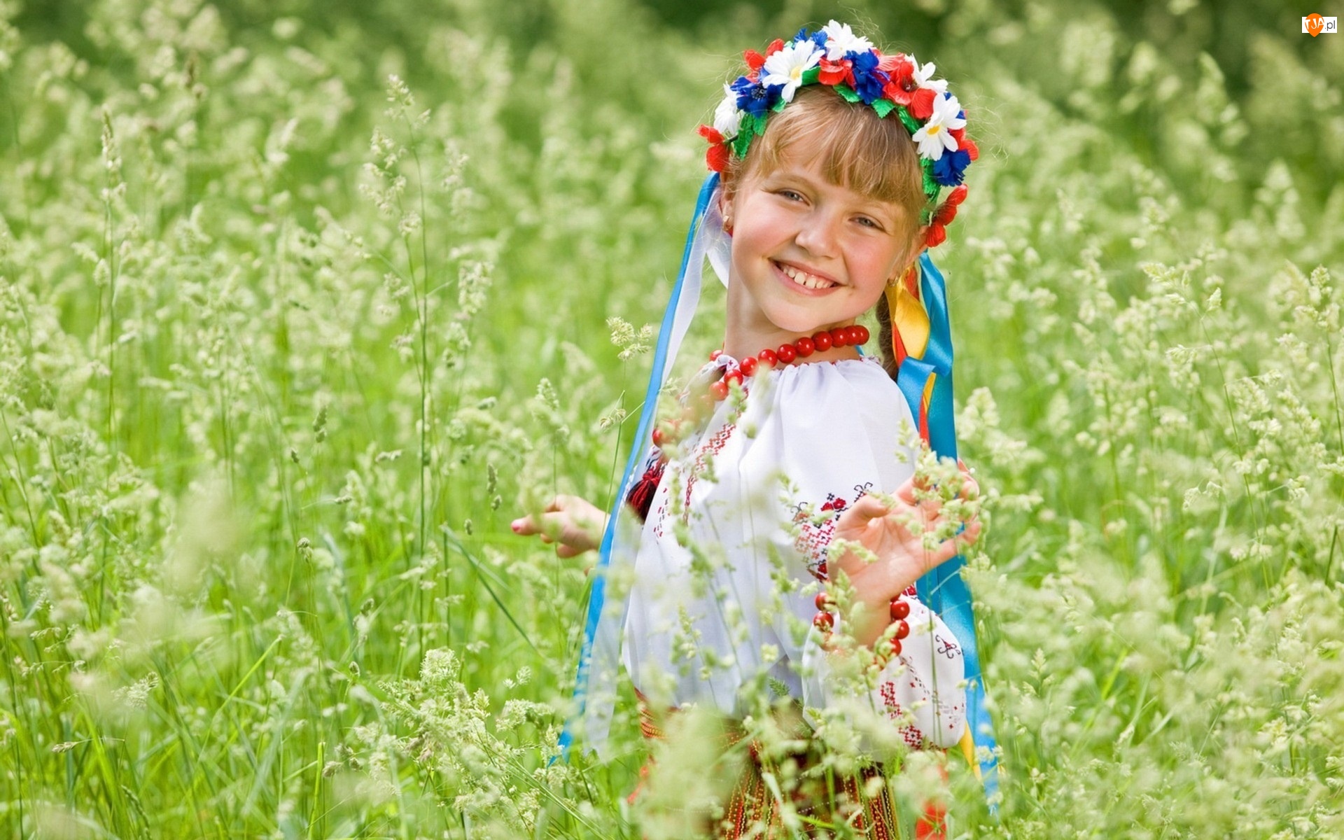 Roześmiana, Łąka, Dziewczynka, Wianek