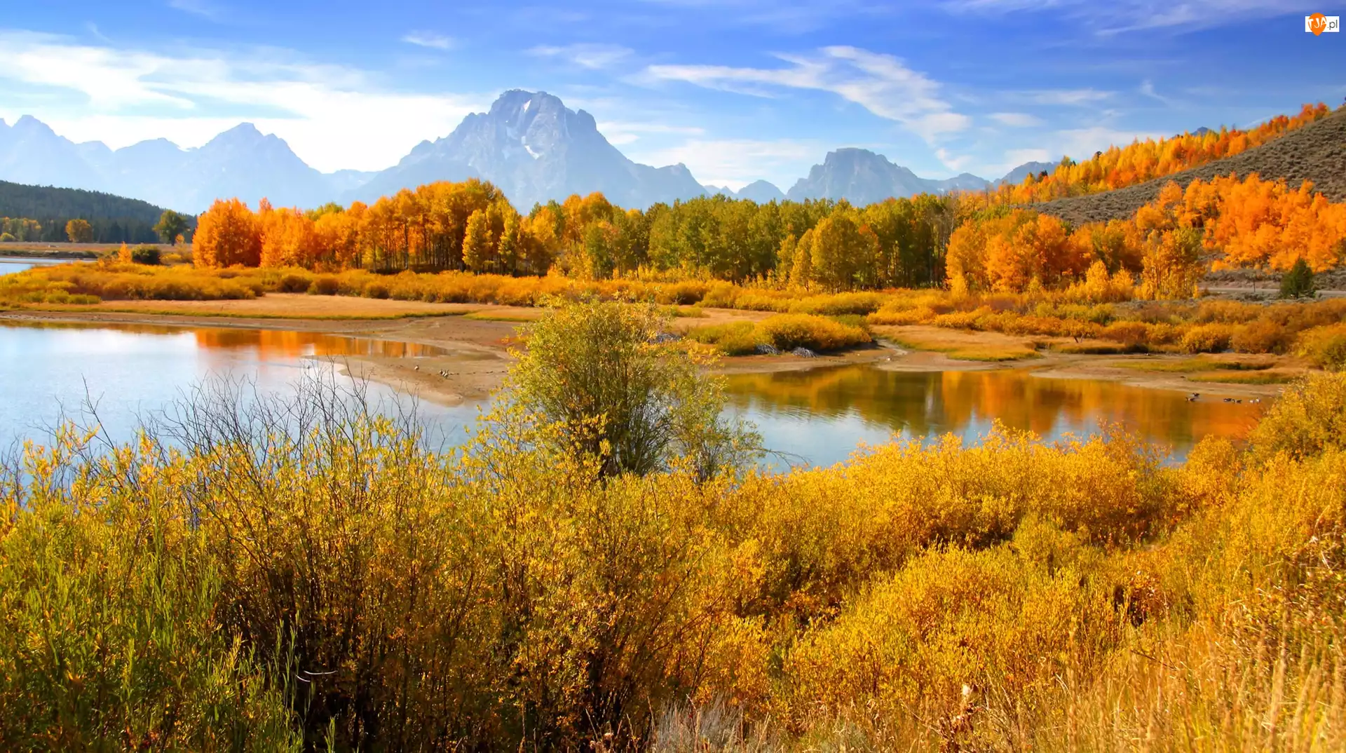 Rozlewisko, Góry, Rzeka, Jesień, Roślinność
