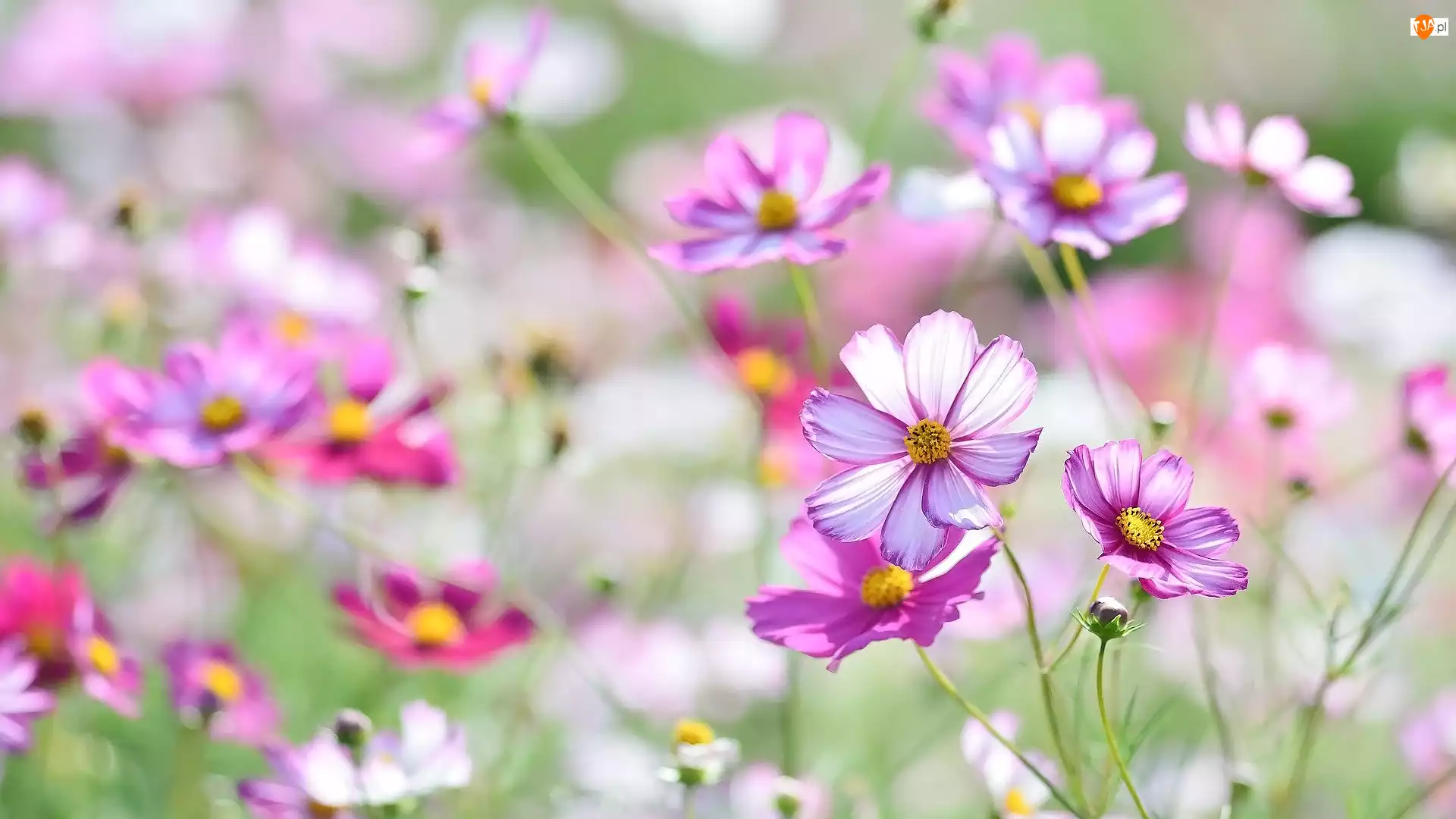 Rozmycie, Kwiaty, Różowe, Kosmee