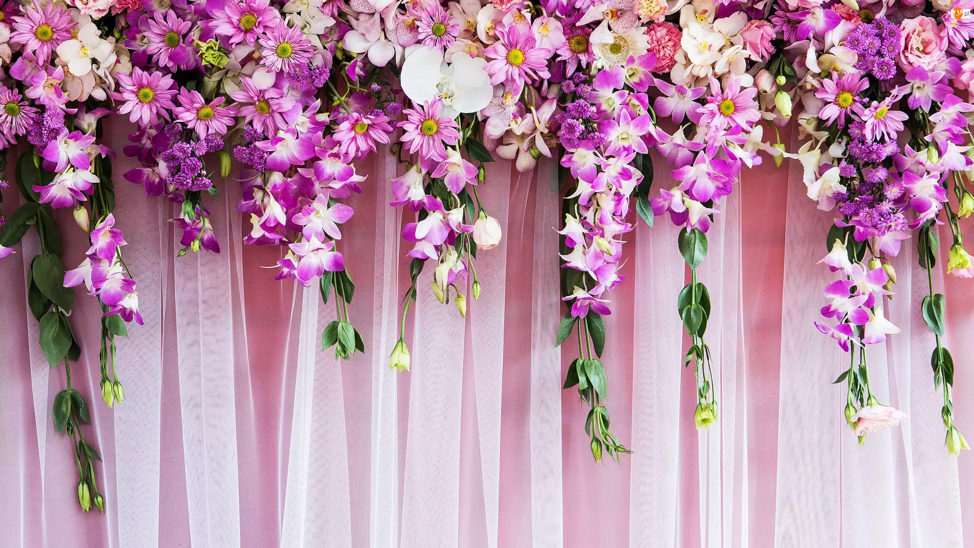 Firanka, Kwiaty, Różowe, Storczyki