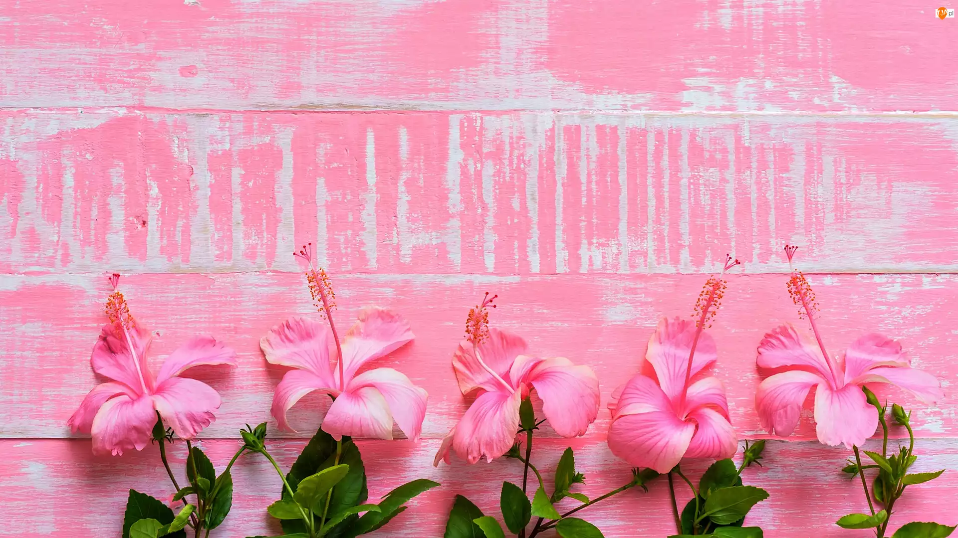 Różowe, Deski, Kwiaty, Hibiskus, Tło