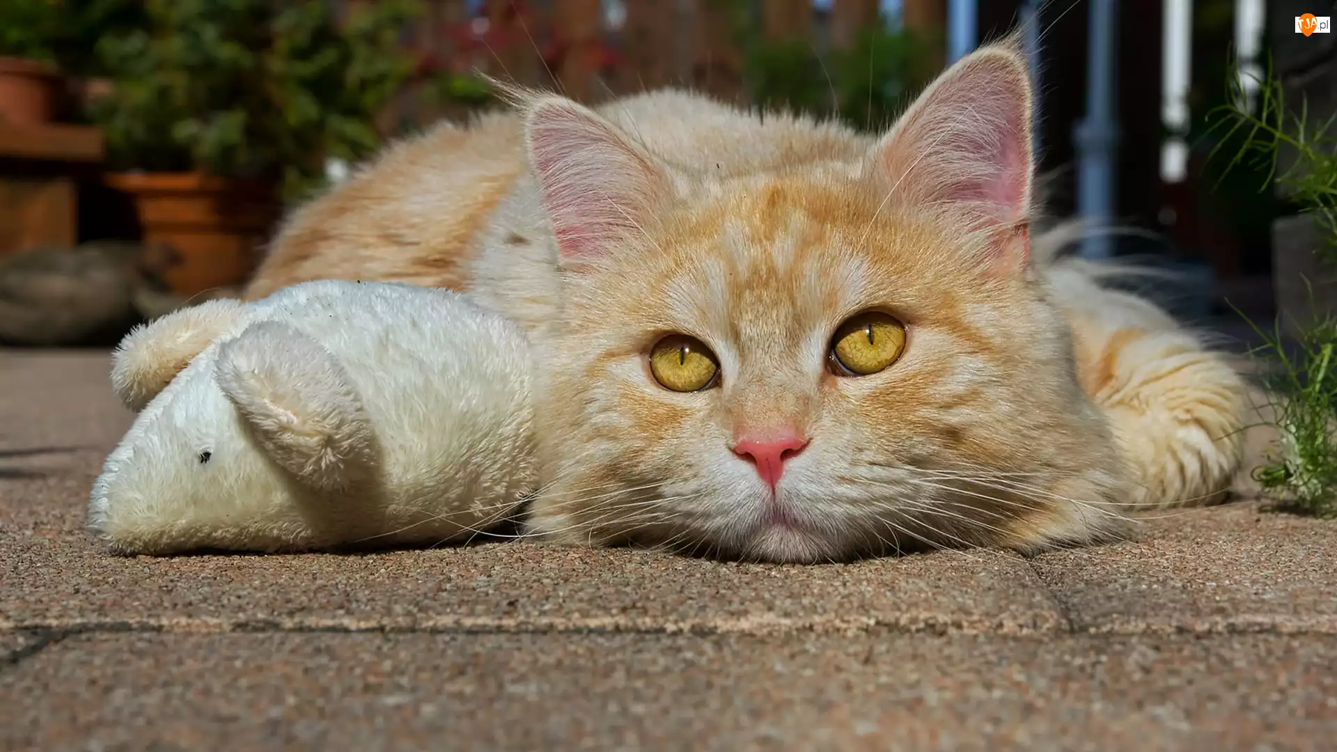 Rudawy, Leżący, Pluszowa, Zabawka, Kot, Mysz