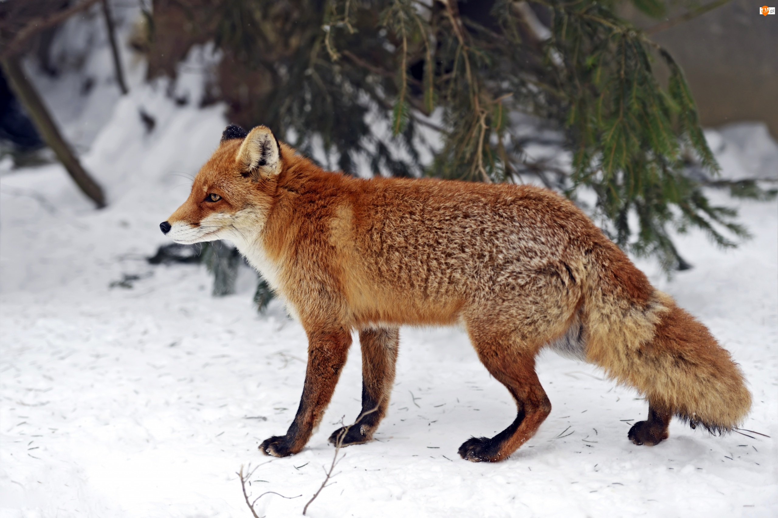 Rudy, Śnieg, Lis, Zima