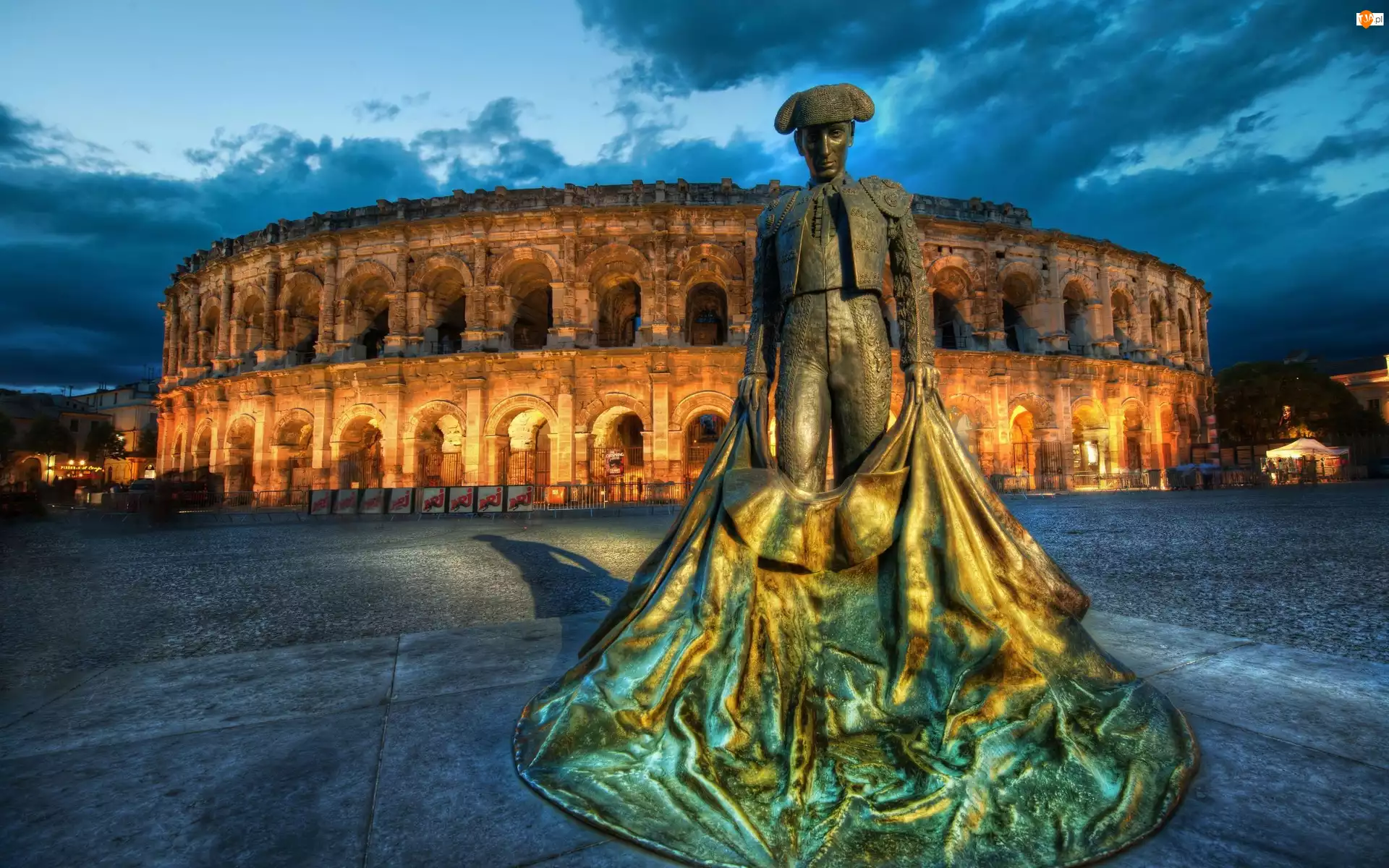 Ruiny, Nimes, Rzeźba, Francja, Torreador, Arena Gladiatorów