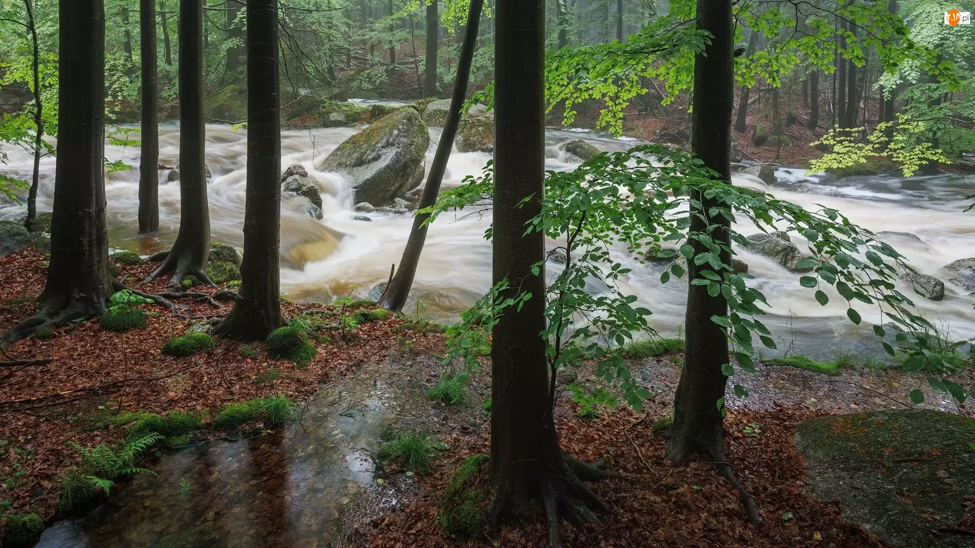 Rwący, Las, Rzeka, Drzewa, Potok, Kamienie