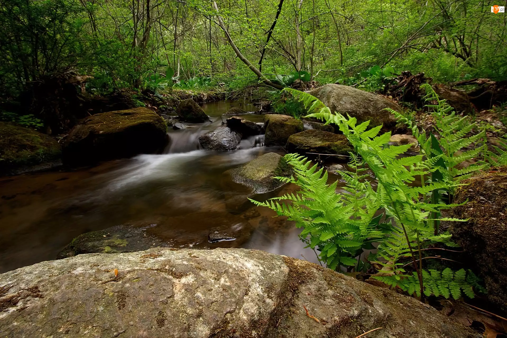 Las, Rzeka, Kamienie, Paproć
