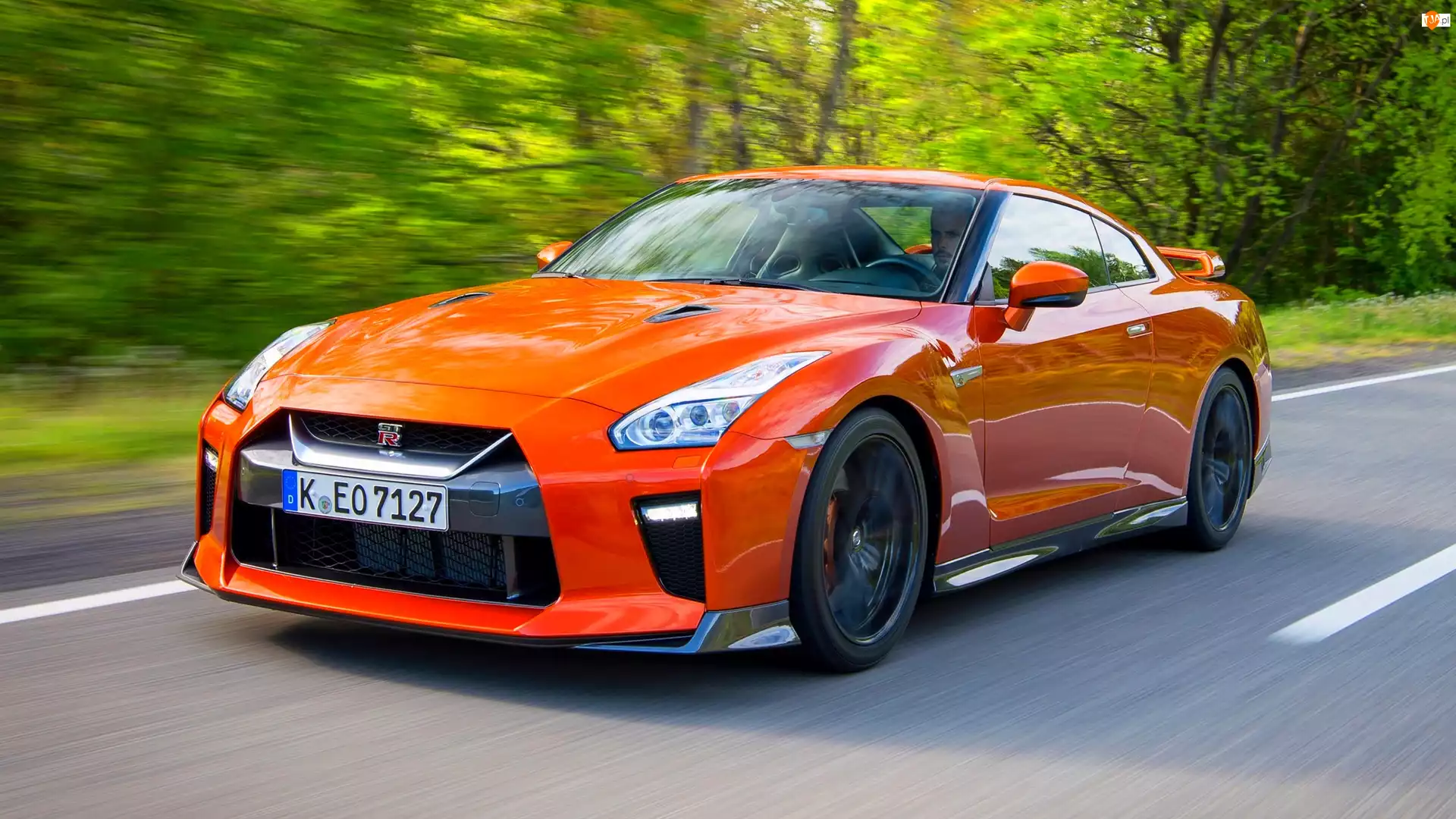 Droga, Czerwony, Nissan GT-R, Las