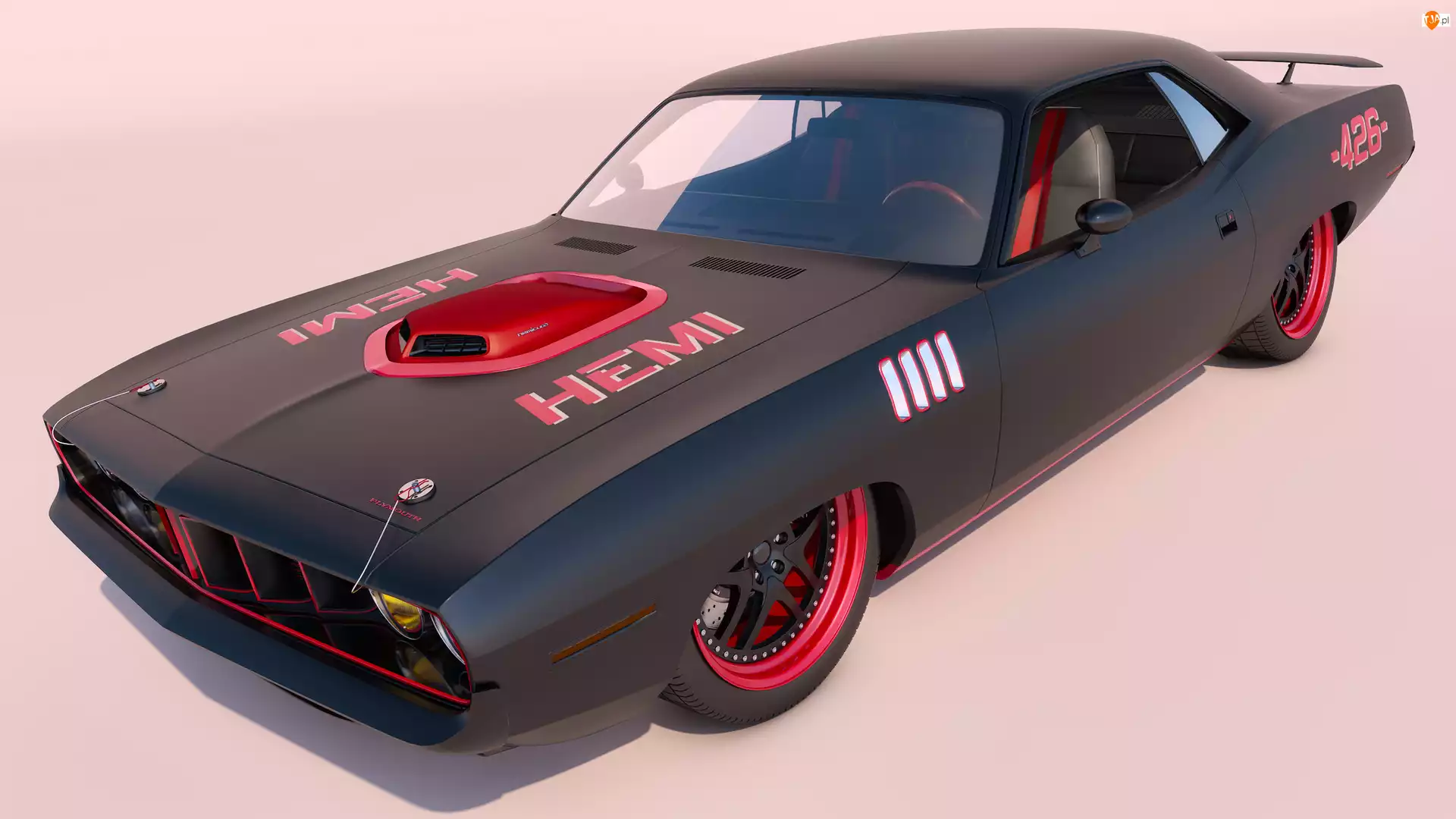 1971, Czarno-czerwony, Zabytkowy, Plymouth Cuda 426