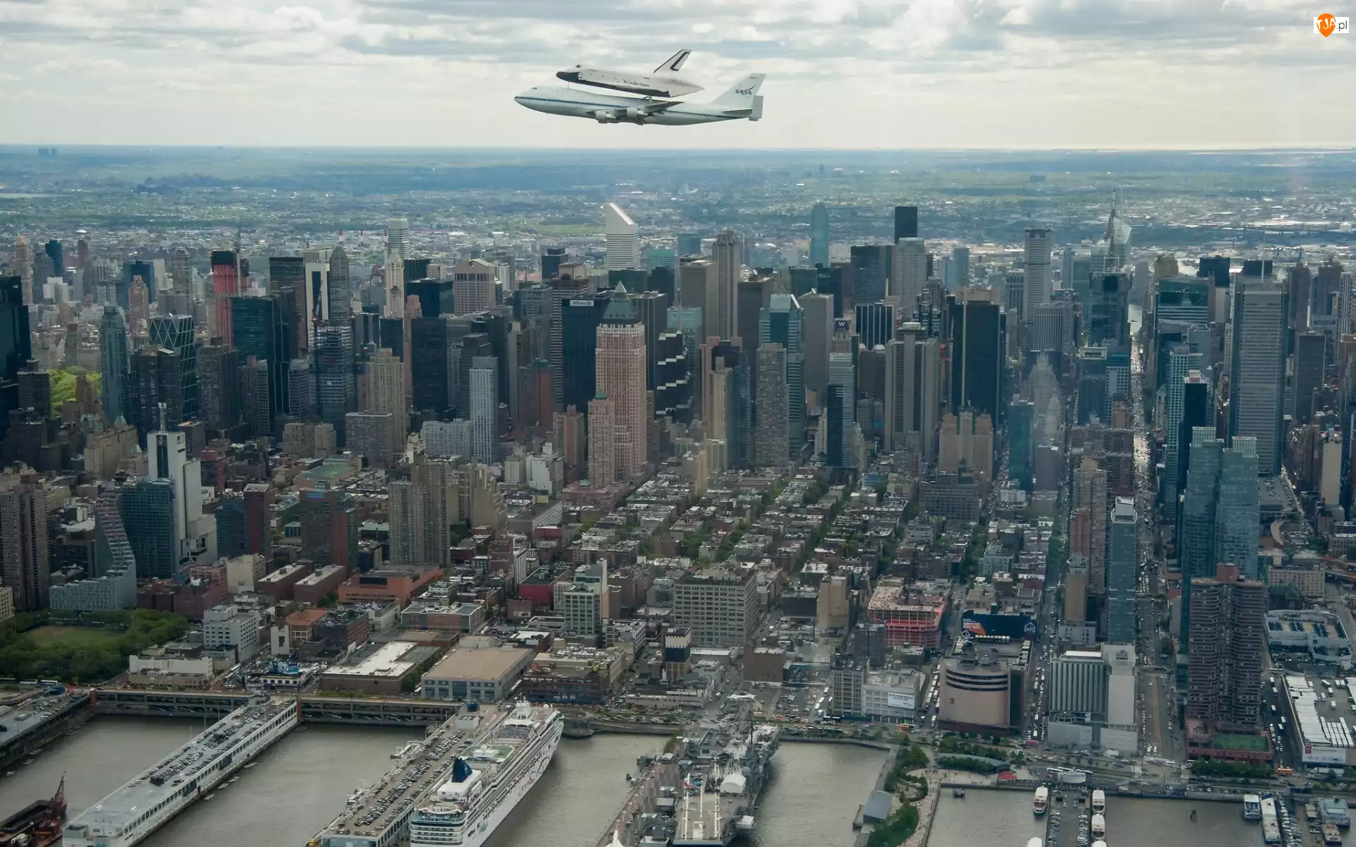 Drapacze, Samolot, Miasta, Panorama, Chmur