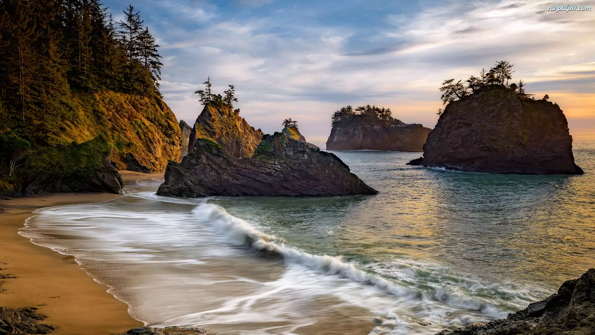 Samuel H Boardman State Scenic Corridor, Morze, Wybrzeże, Oregon, Skały, Park stanowy, Stany Zjednoczone, Drzewa