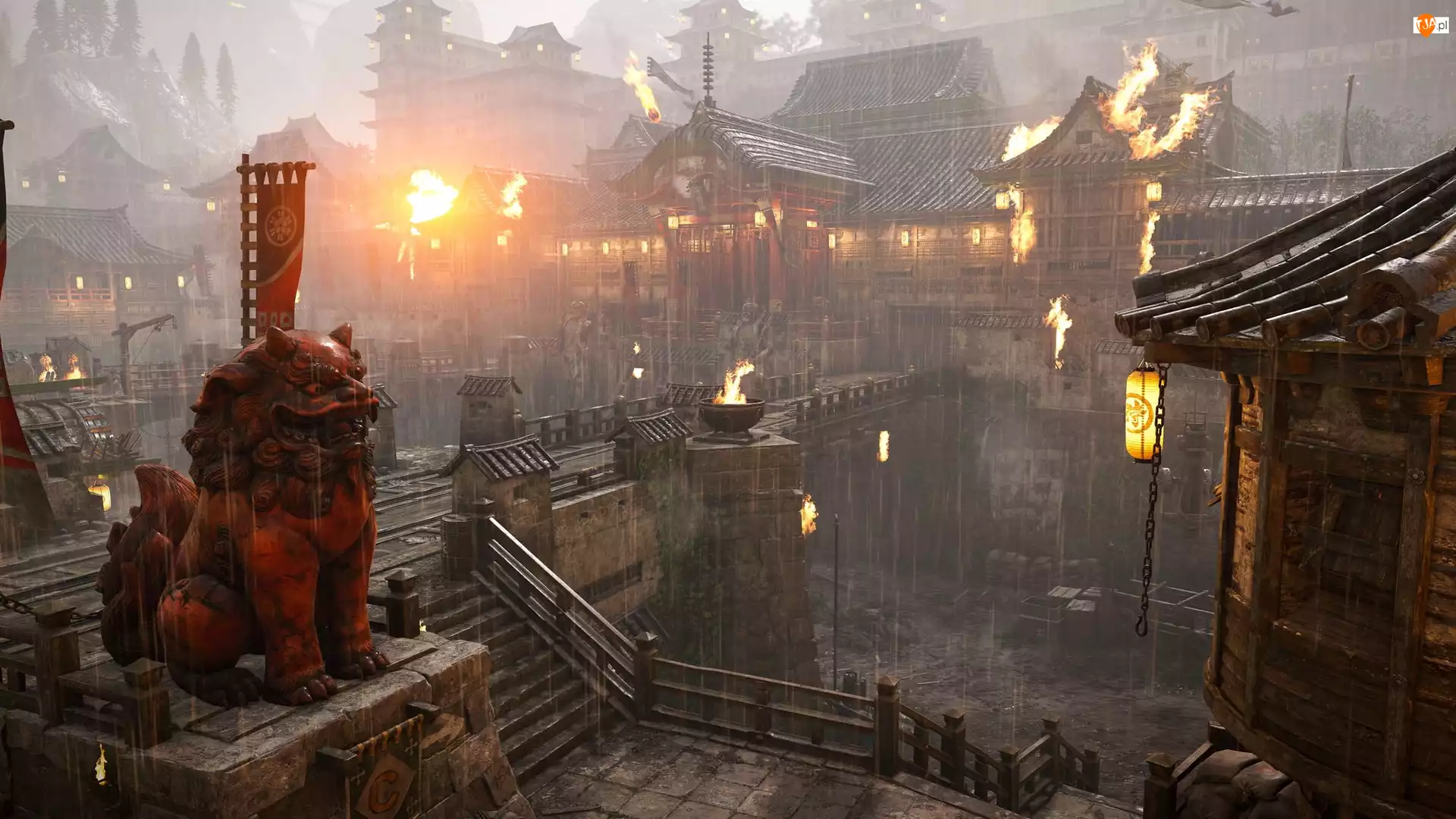 Schody, Ogień, Gra, For Honor, Budynki