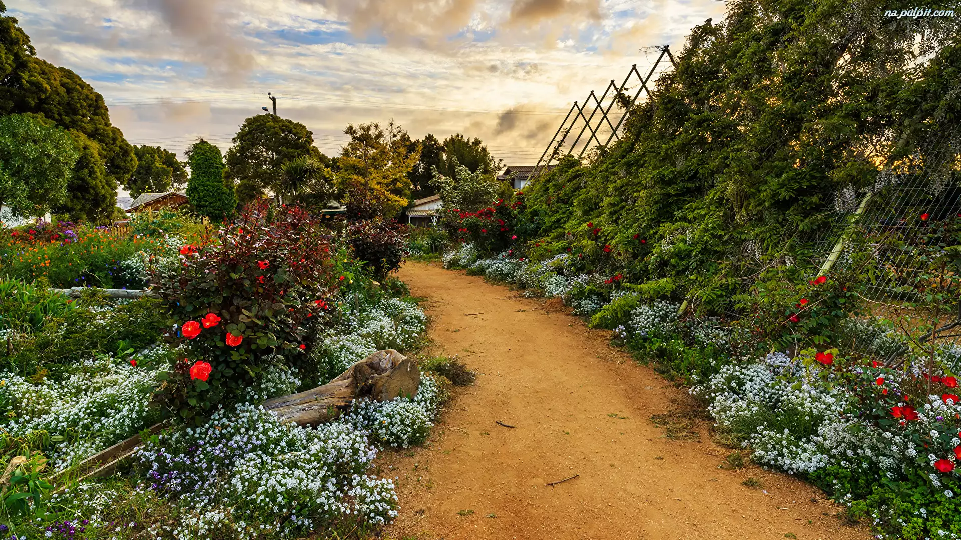 Ścieżka, Ogród, Krzewy, Kwiaty