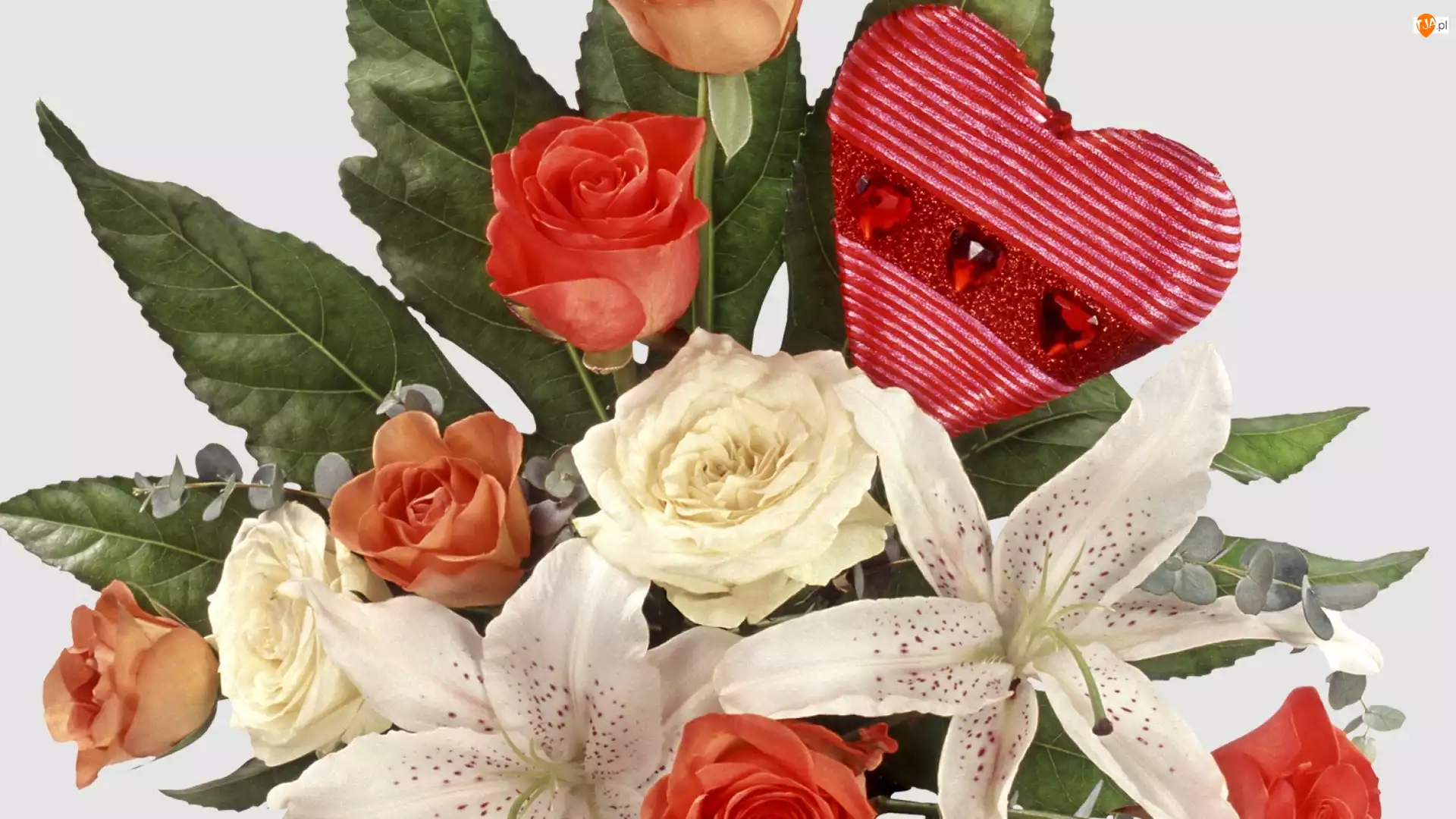 Serce, Bukiet, Róże, Kwiatów, Lilie