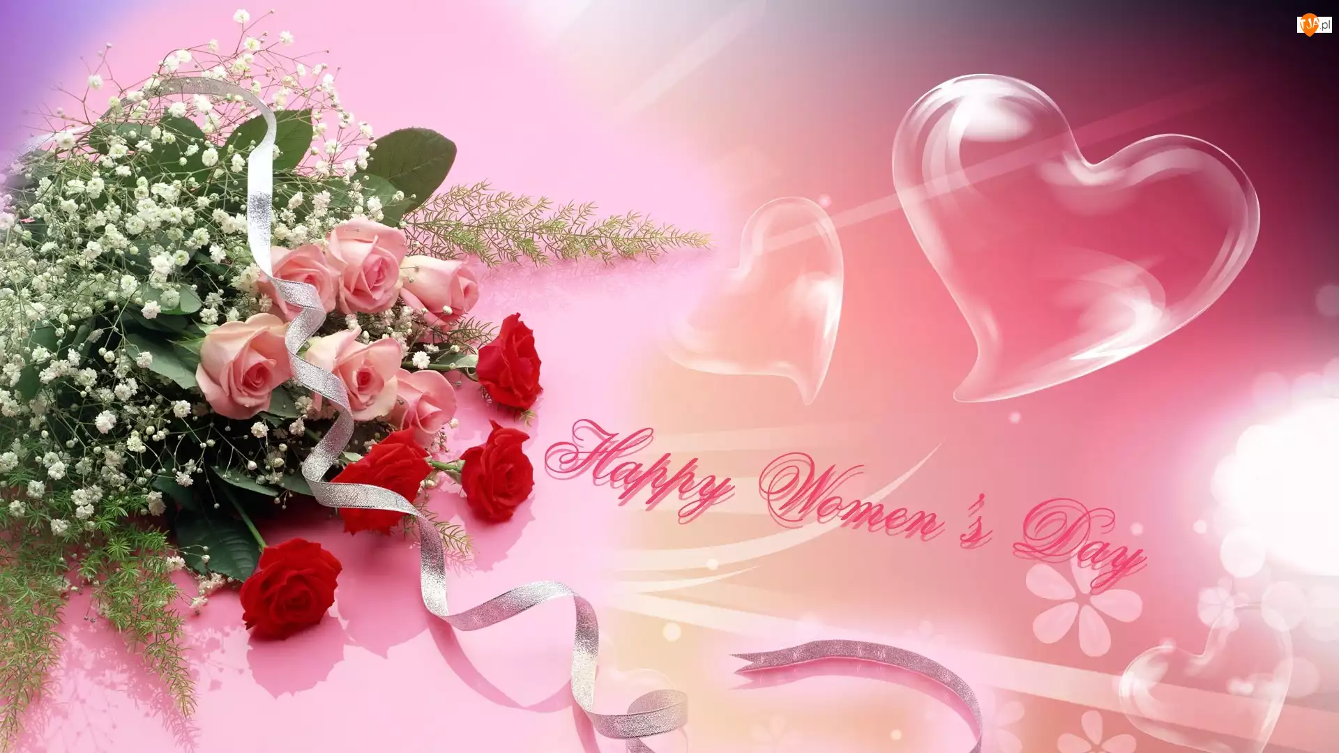 Serce, Dzień, Bukiet, Kobiet, Róz, Napis