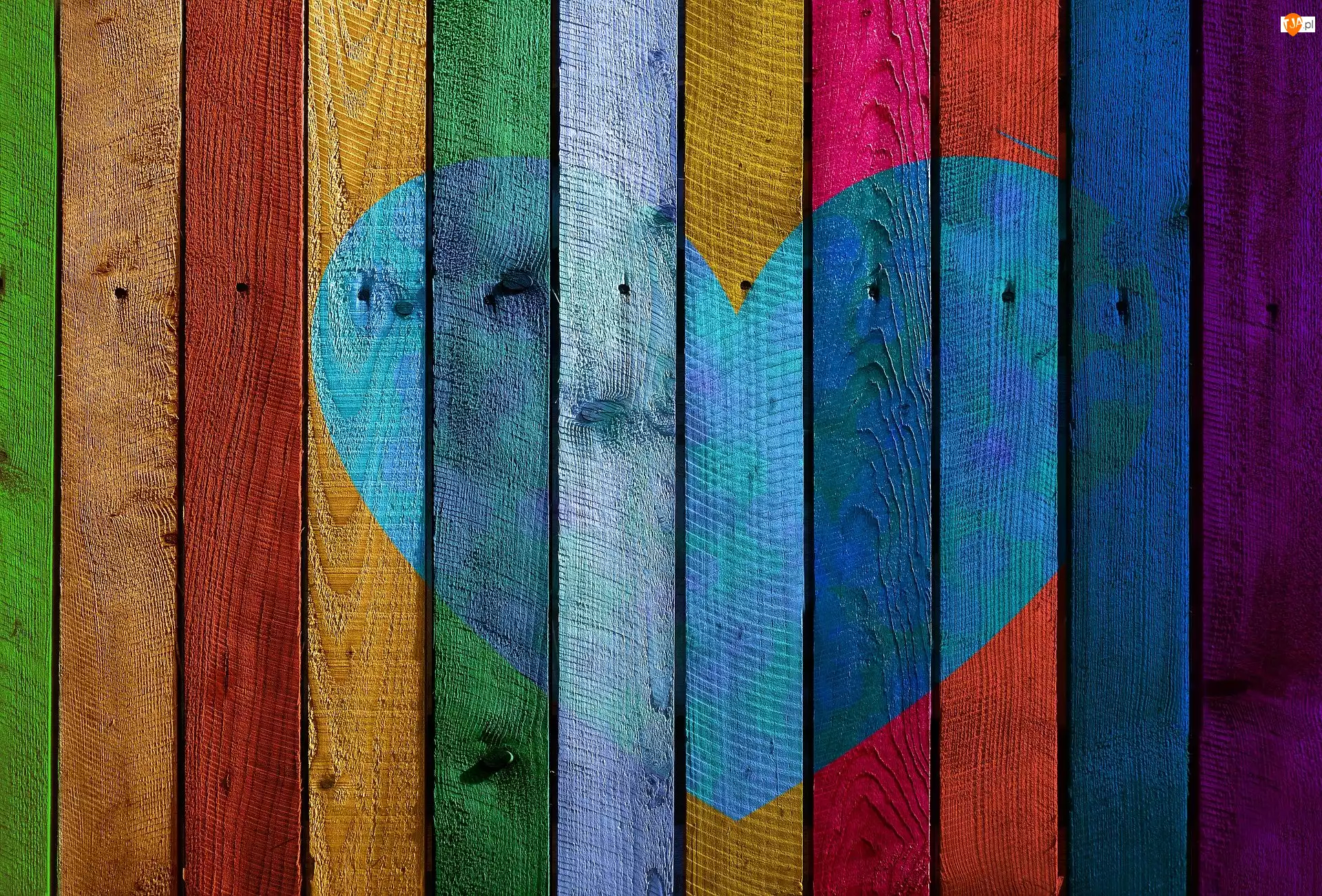 Serce namalowowane na kolorowych deskach