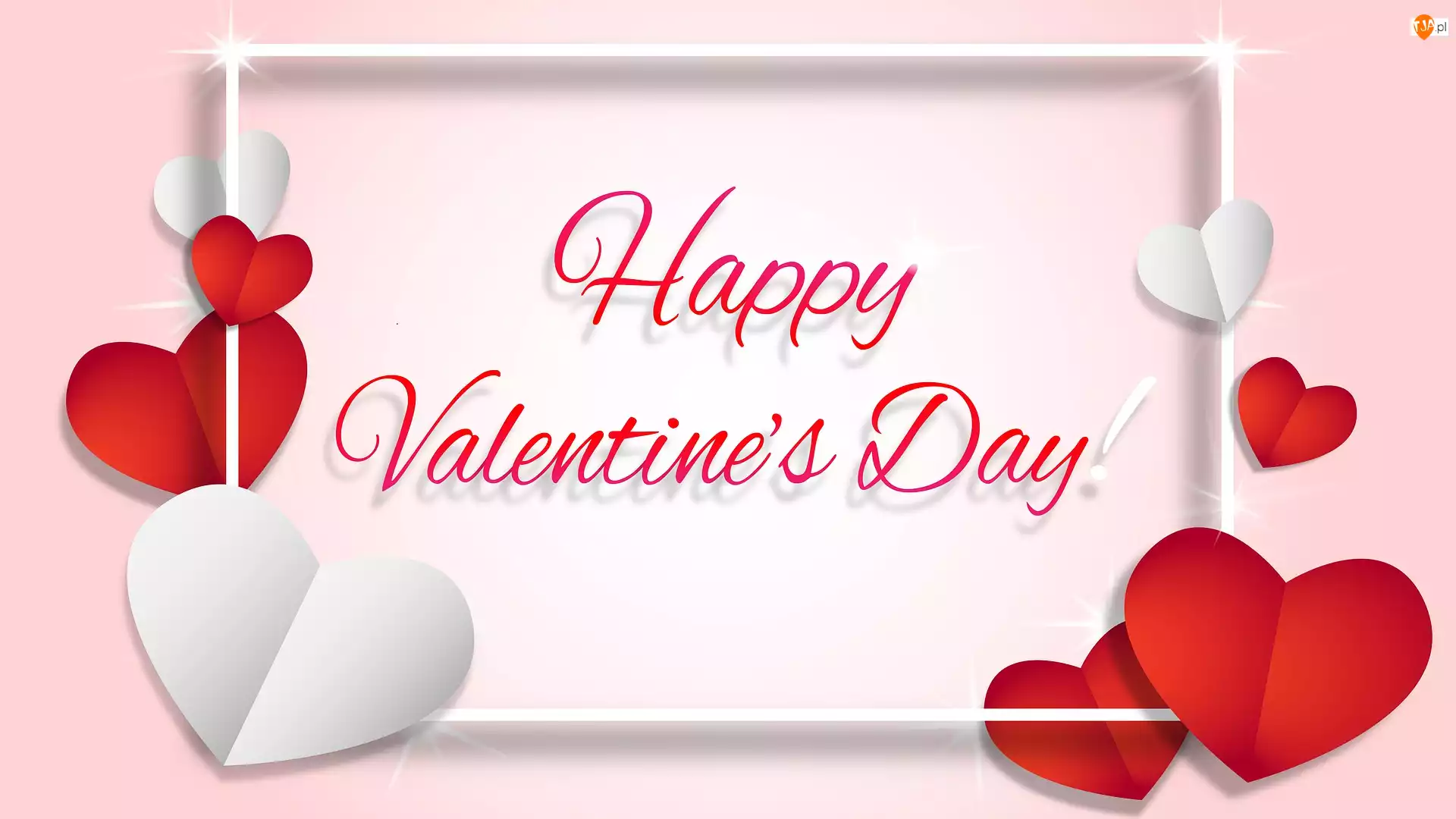 Białe, Serduszka, Napis, Walentynki, Czerwone