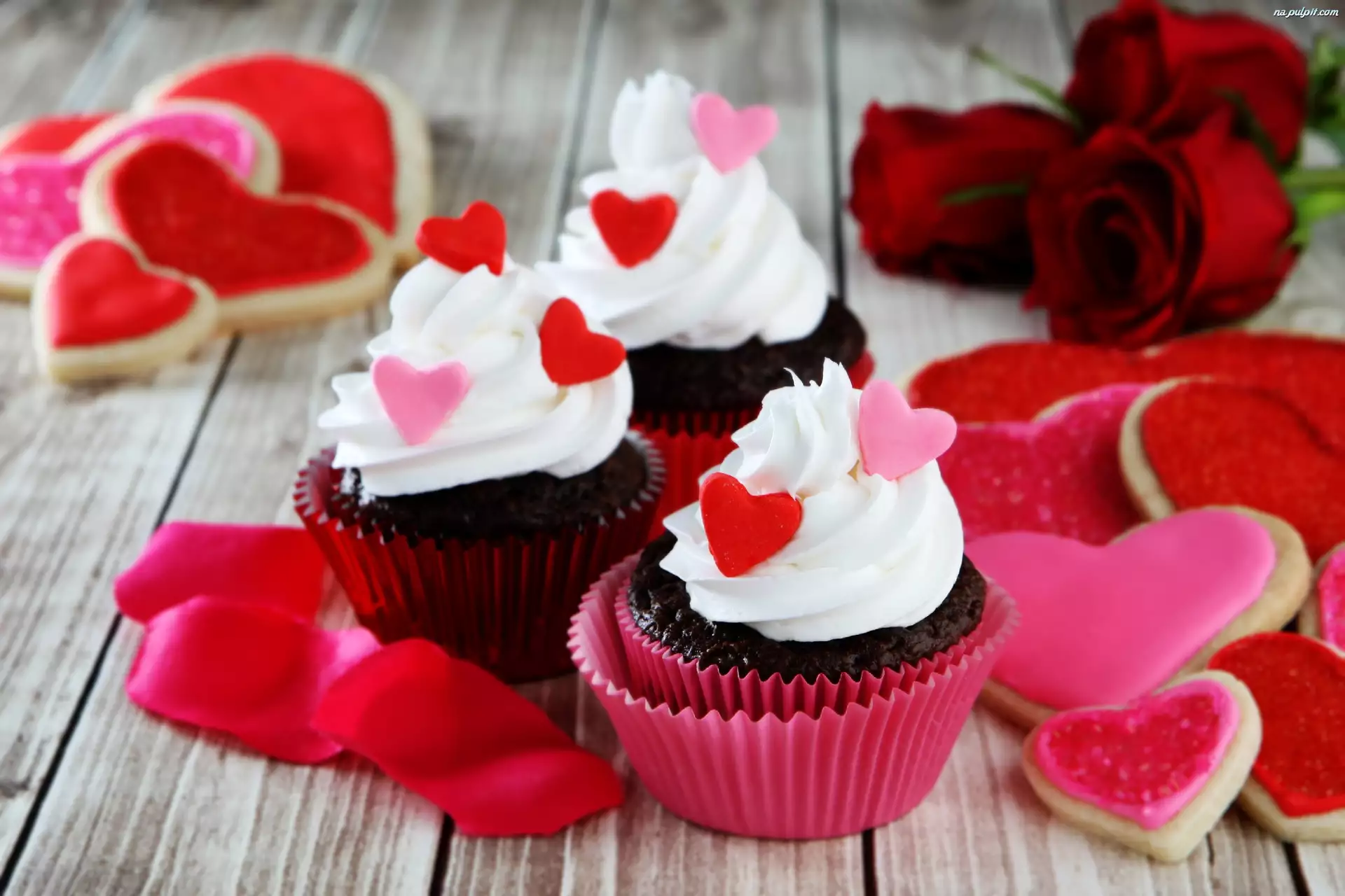 Serduszka, Róże, Ciasteczka, Babeczki, Czerwone