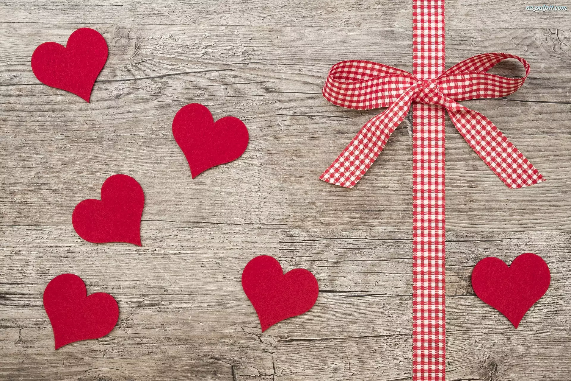 Miłość, Deski, Serduszka, Czerwone, Wstążka