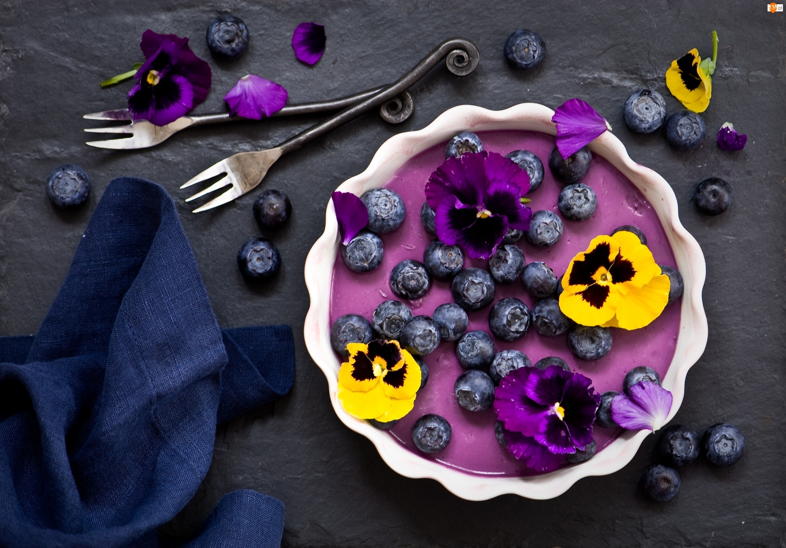 Serwetka, Deser, Bratki, Borówki, Sztućce