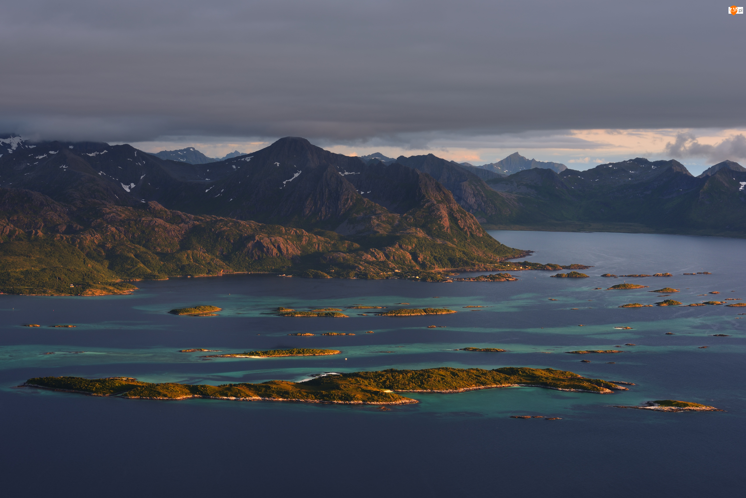 Senja, Wyspa, Góry, Norwegia, Morze, Chmury