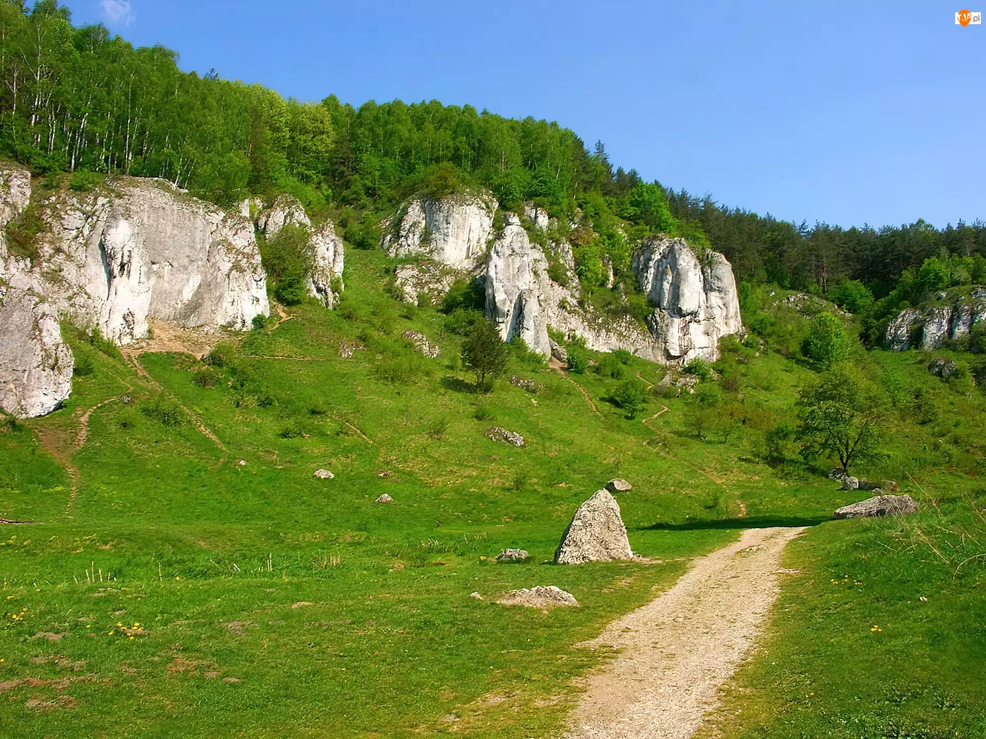 Skały, Droga, Łąka, Las