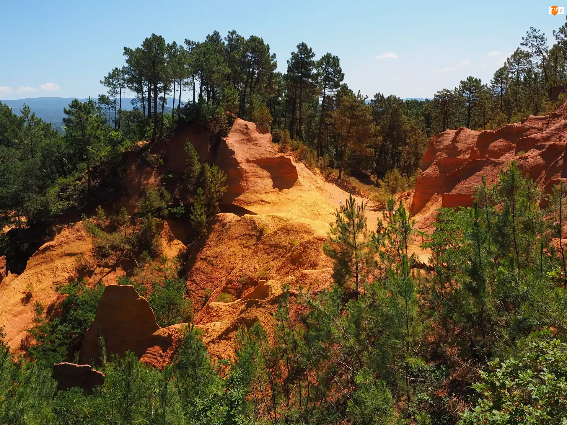 Roussillon, Skały, Punkt widokowy, Prowansja, Ochra, The Provencal Colorado, Francja, Drzewa