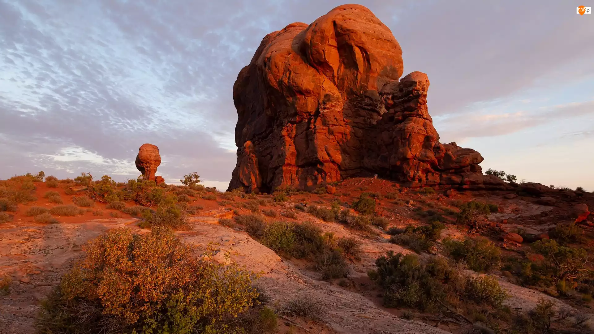 Skały, Stany Zjednoczone, Niebo, Formacja skalna, Utah, Chmury, Balanced Rock, Park Narodowy Arches