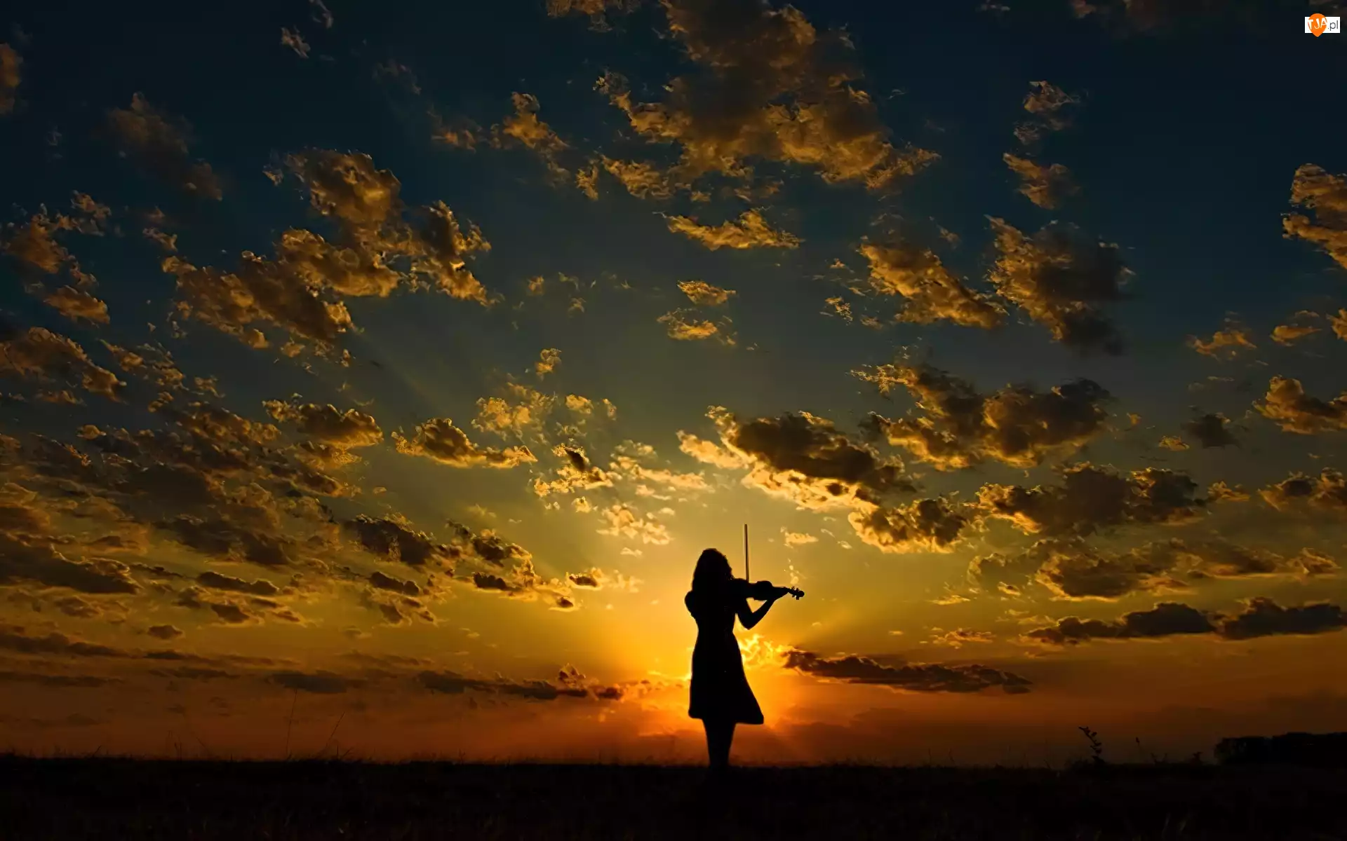 Chmury, Skrzypaczka, Słonca, Zachód, Kobieta