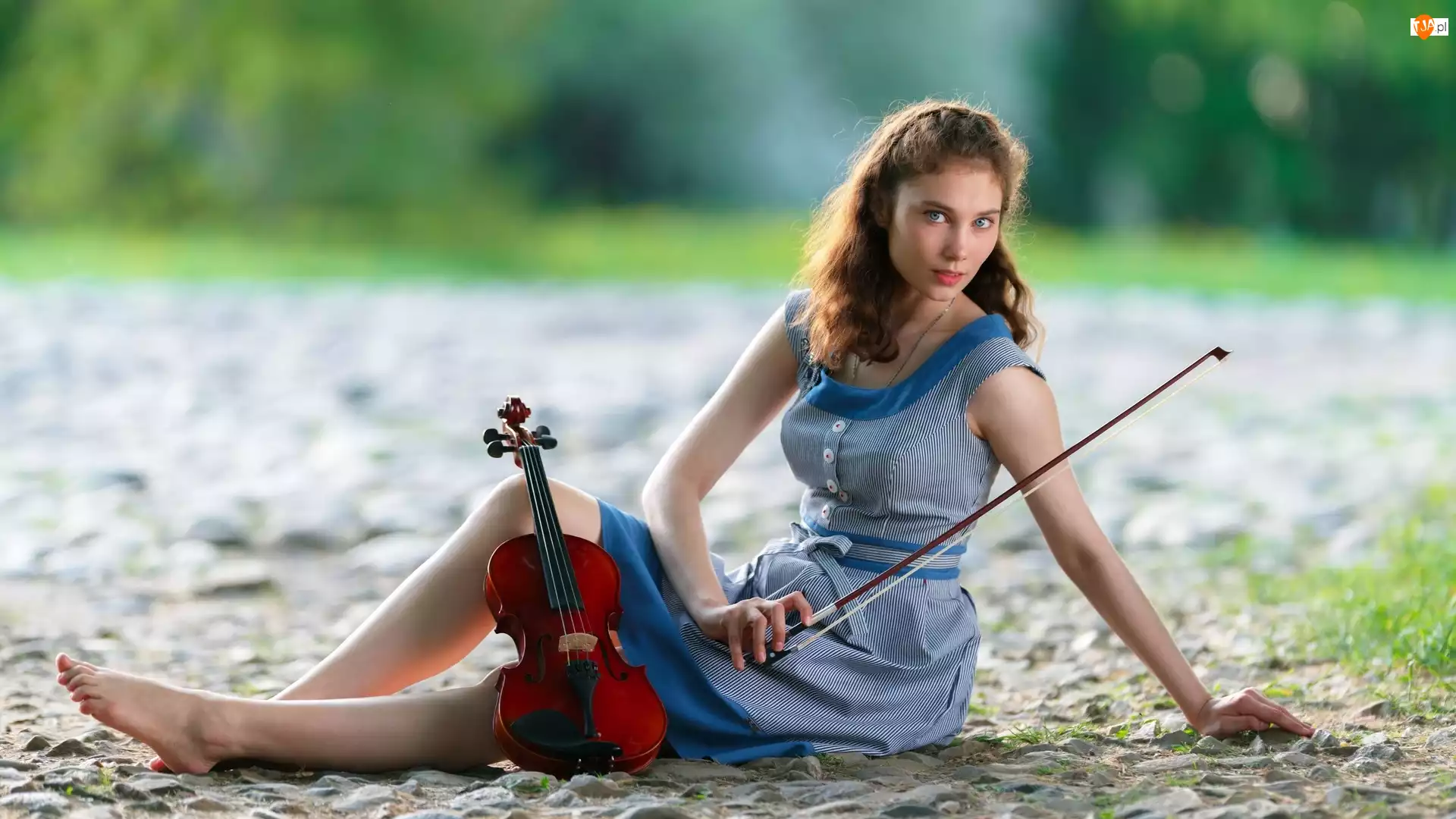 Skrzypce, Kobieta, Niebieska, Sukienka