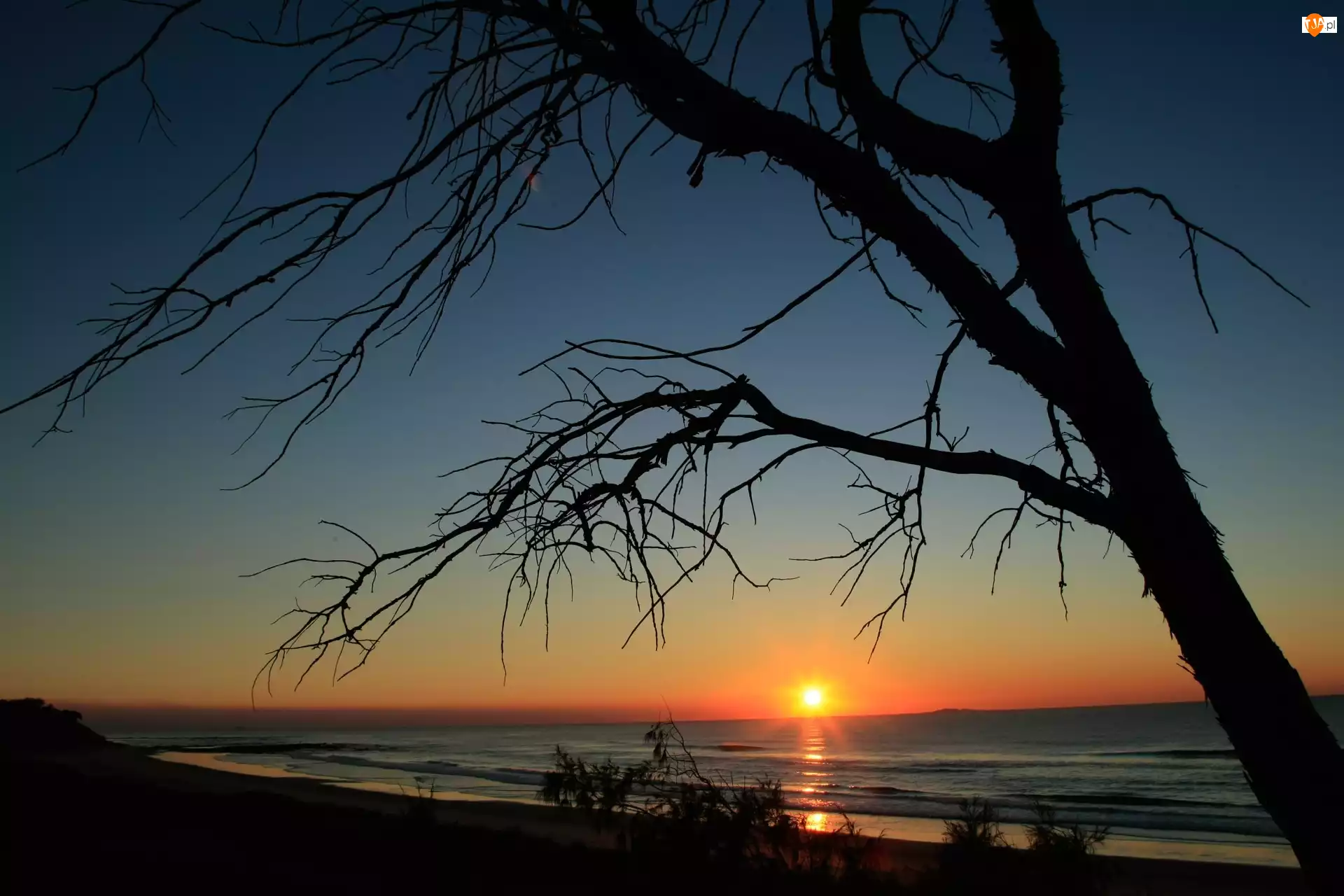 Słońca, Drzewo, Morza, Brzeg, Wschód