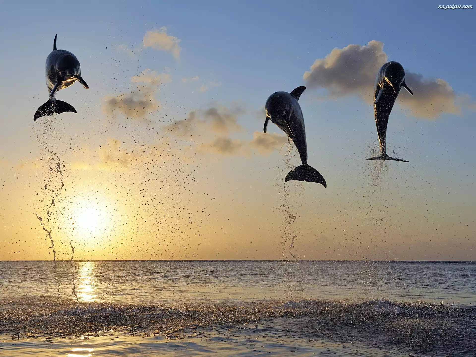 Słońca, Trzy, Morze, Delfiny, Zachód