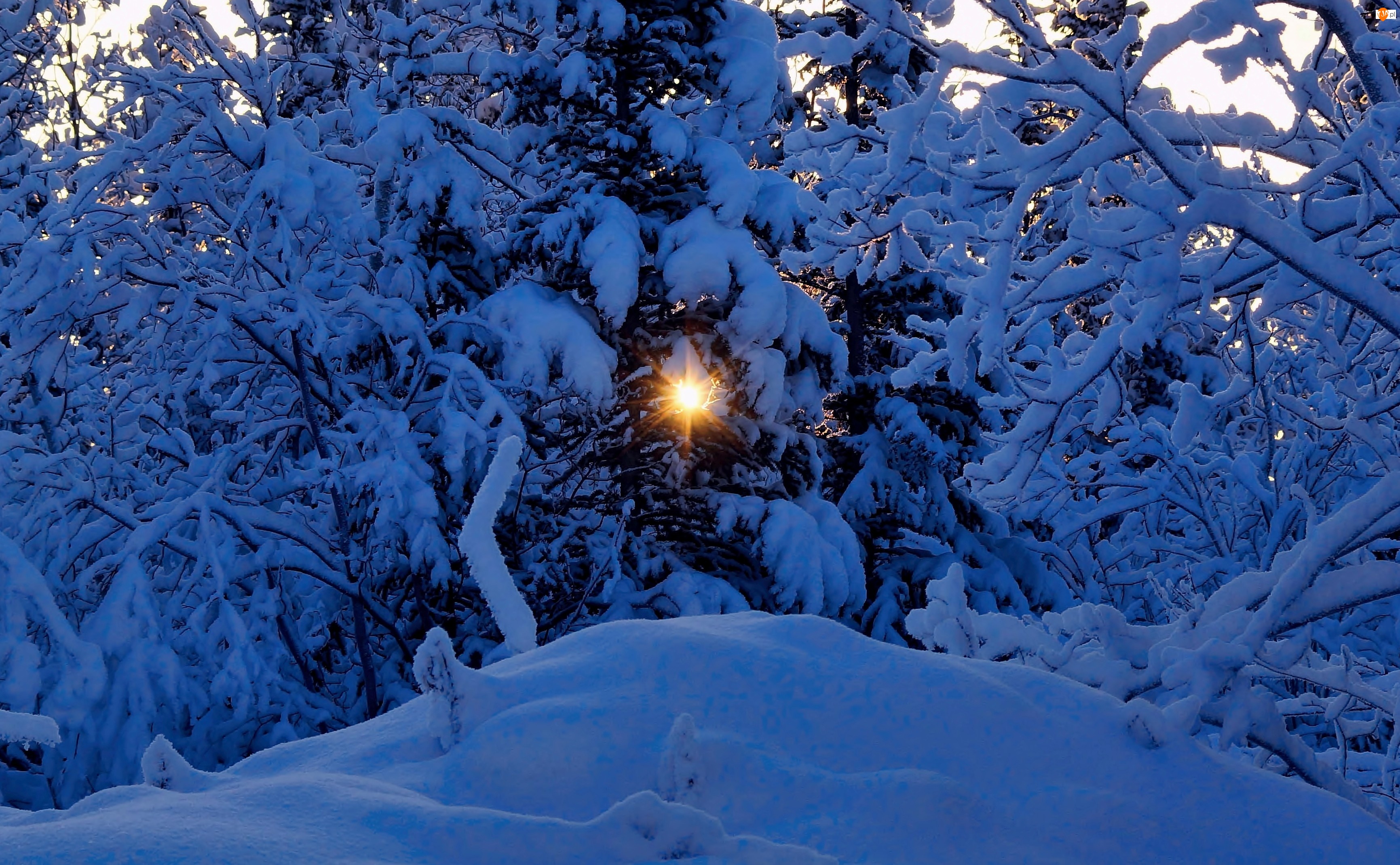 Słońca, Zima, Drzewa, Ośnieżone, Promienie