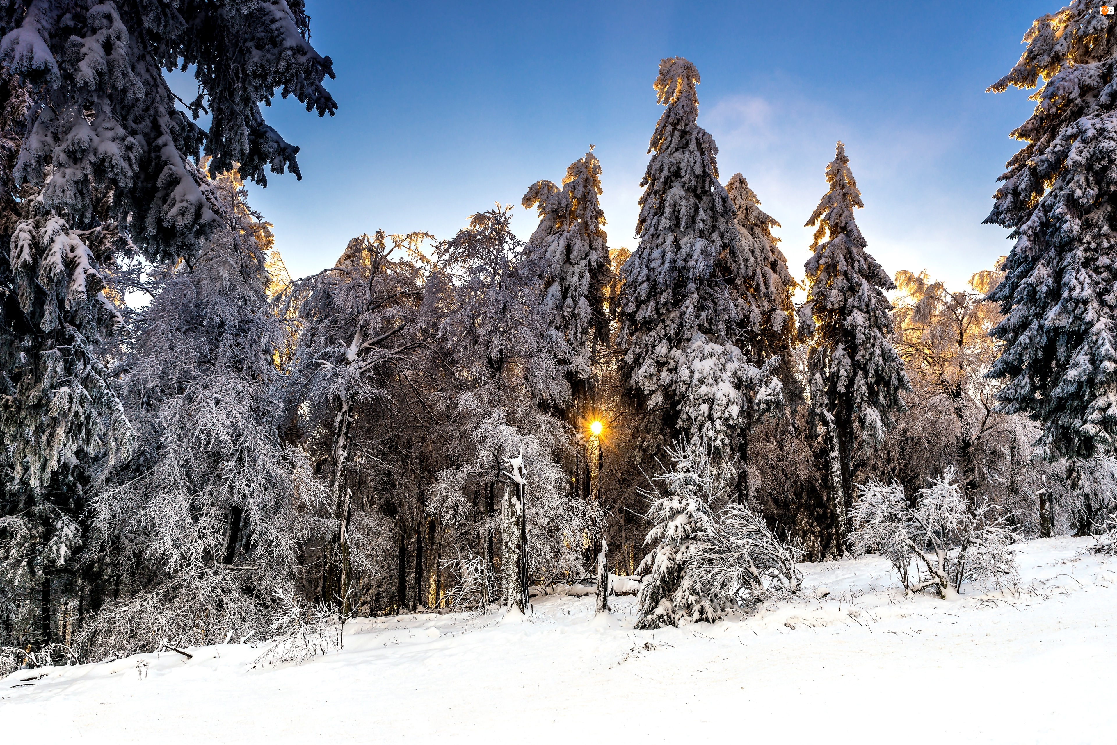 Słońce, Drzewa, Las, Zima, Ośnieżone