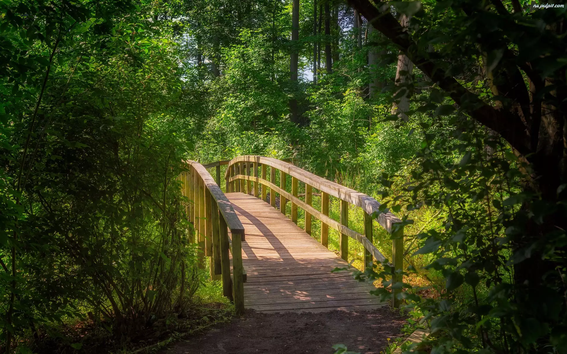Słońce, Las, Drzewa, Most