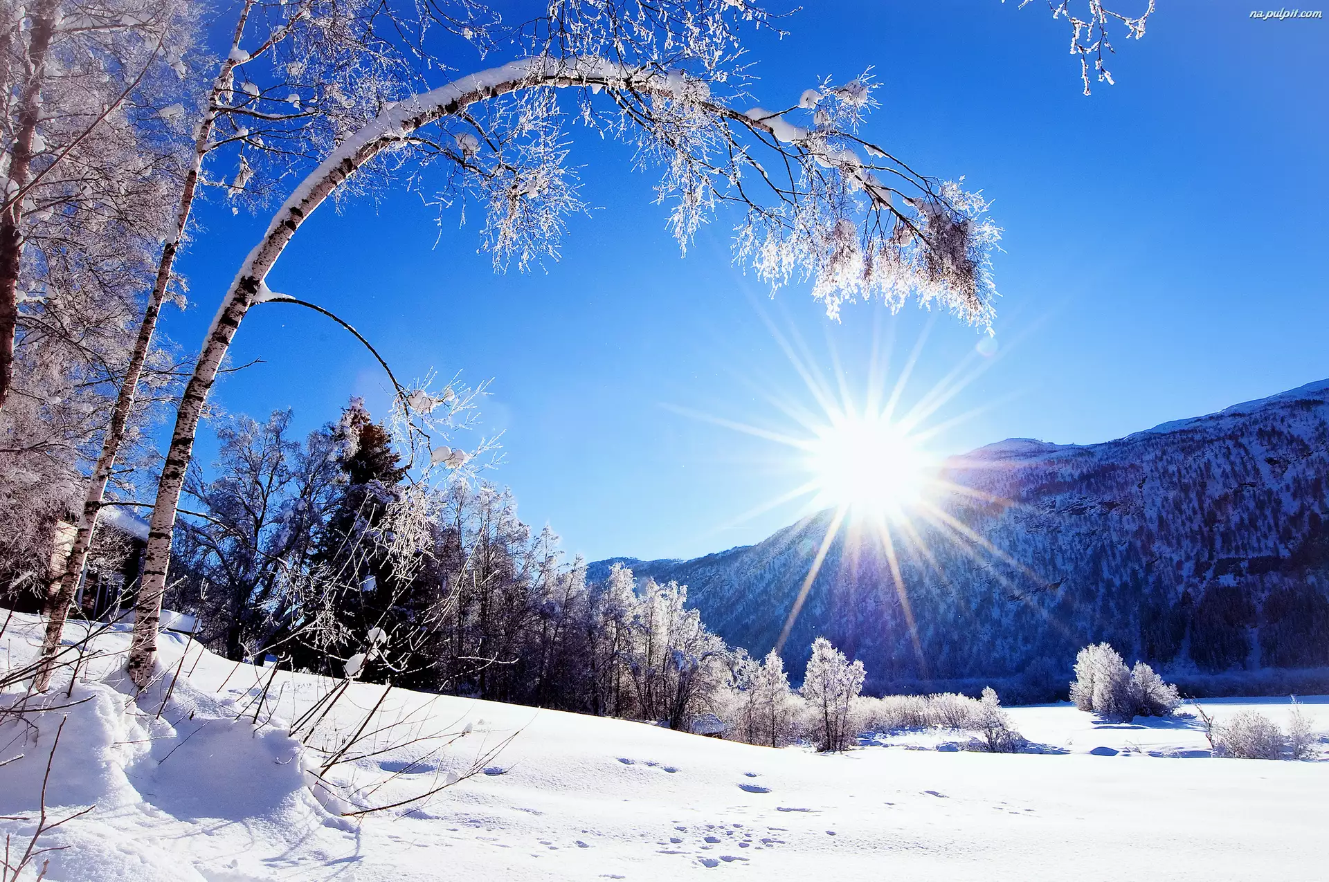 Słońce, Zima, Drzewa