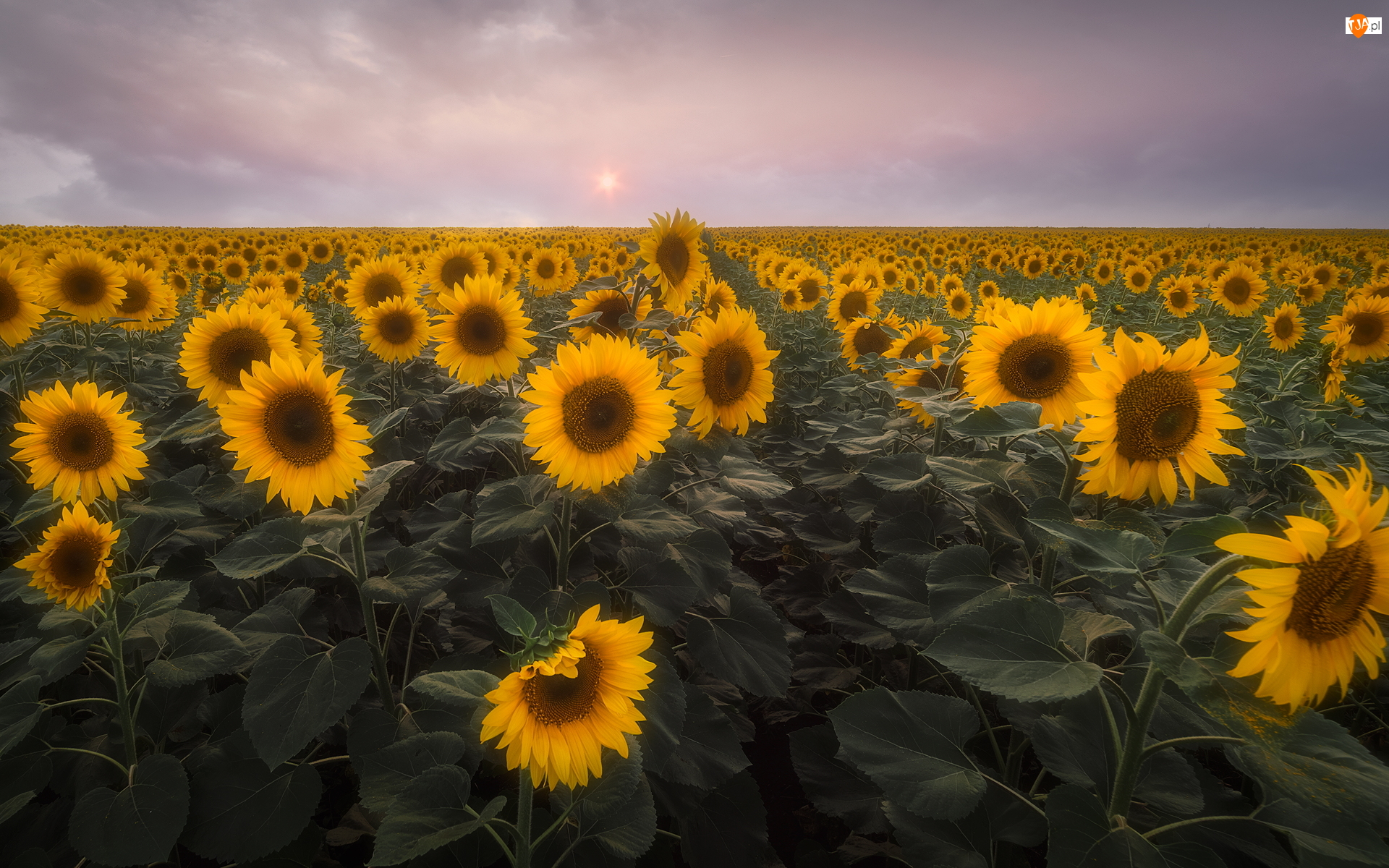 Słoneczniki, Pole, Słoneczników, Kwiaty
