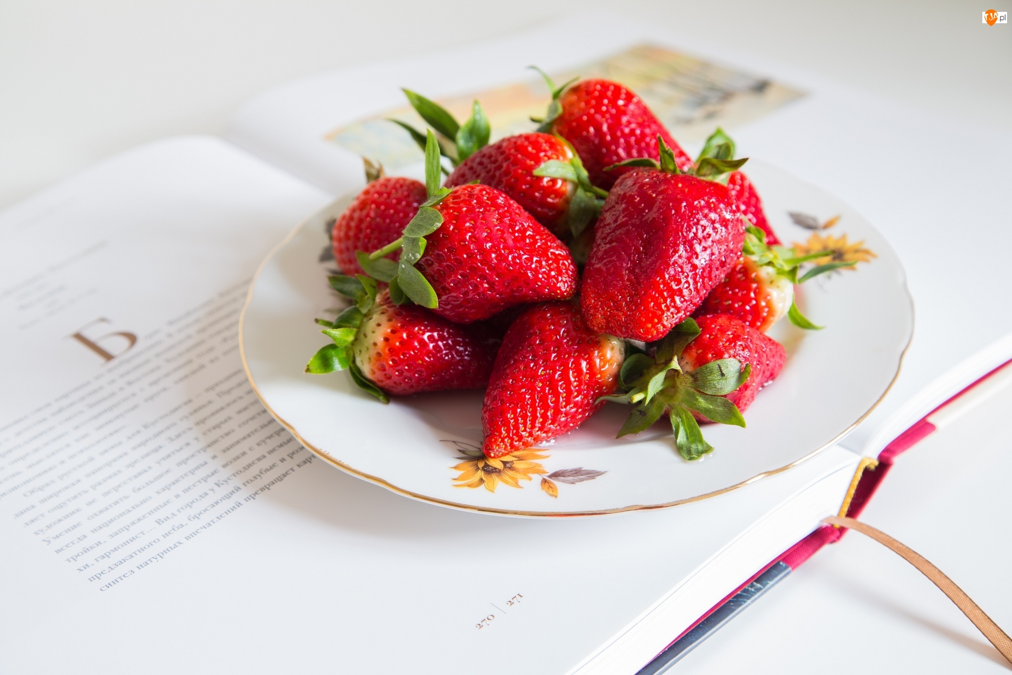 Książka, Truskawki, Talerzyk