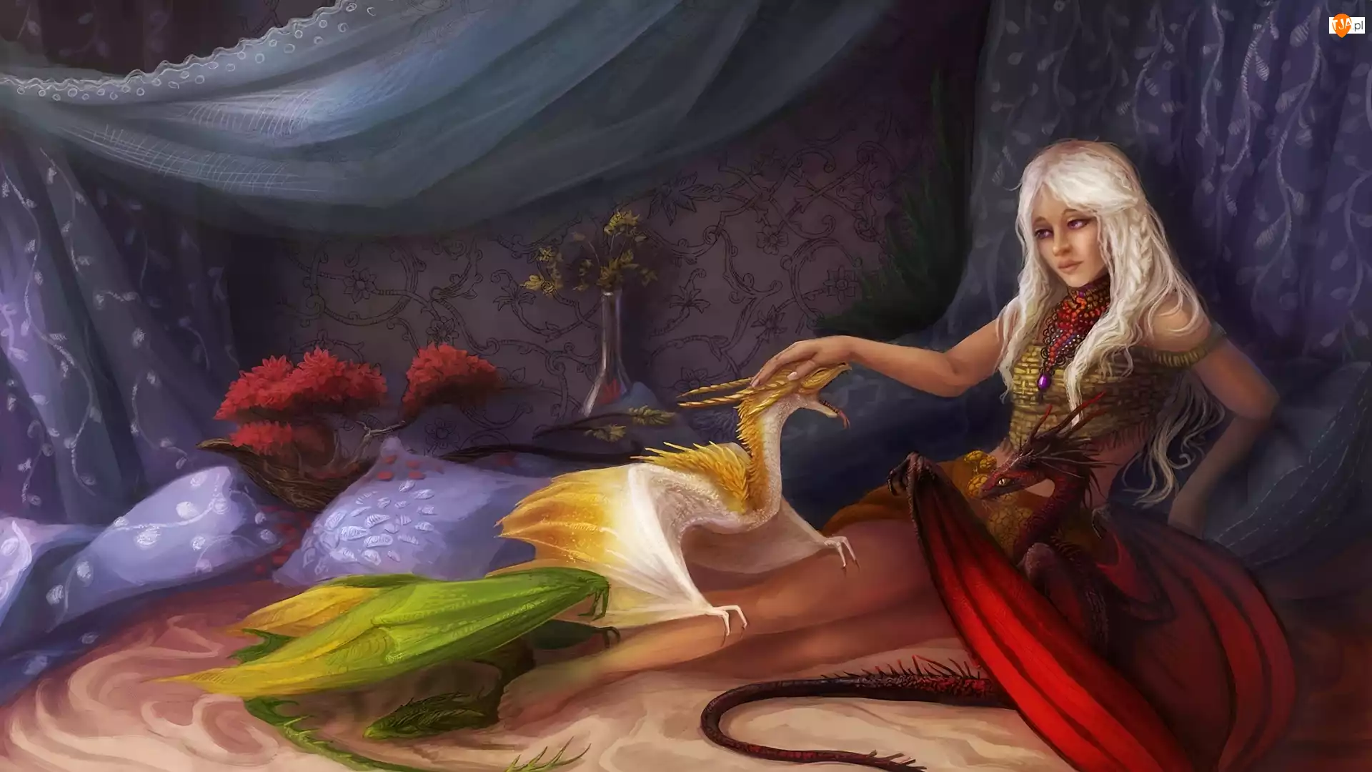 Łóżko, Smoki, Kobieta, Fantasy, Małe