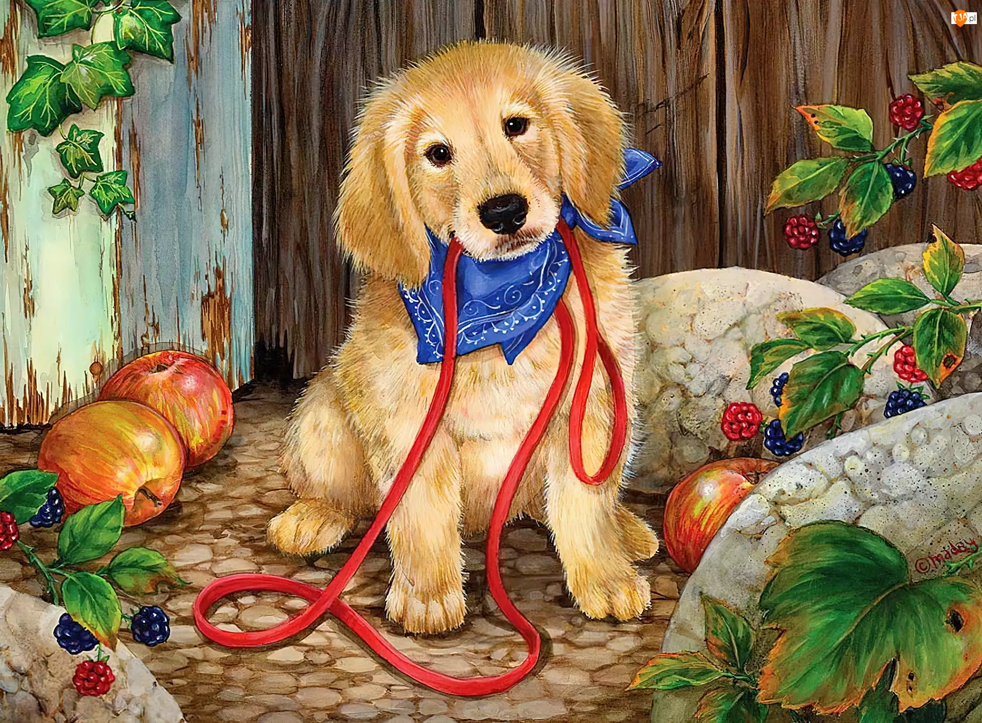 Smycz, Mały, Szczeniak, Pies, Czerwona